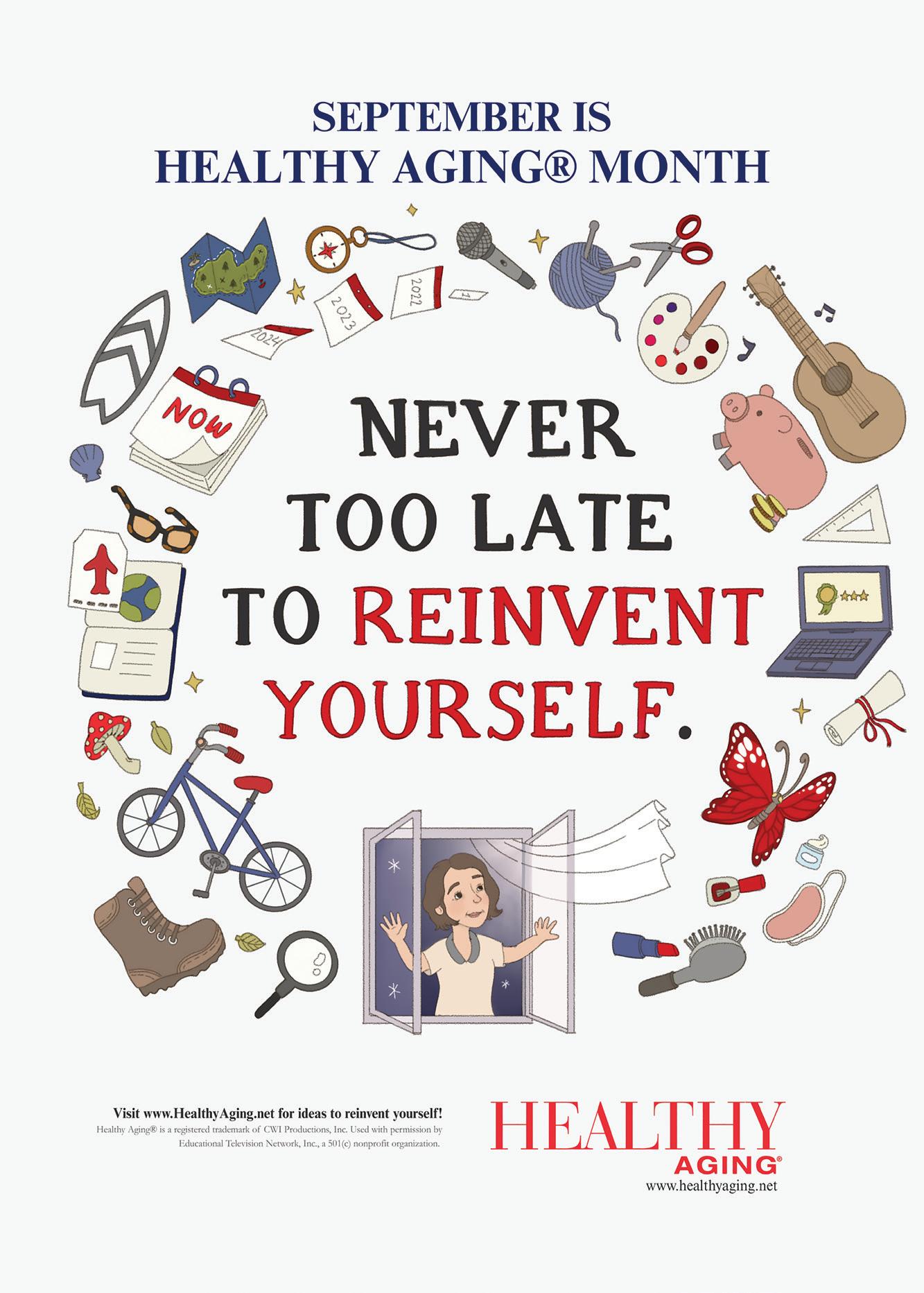 We haven’t published a real “themed” issue for quite some time but decided to give a little extra ink to those Senior Citizens among us, myself included. We corroborated with Carolyn Worthington, the force behind Healthy Aging® Month and she provided us with some great information for seniors in our Special Feature “Never Too Late to Reinvent Yourself”.