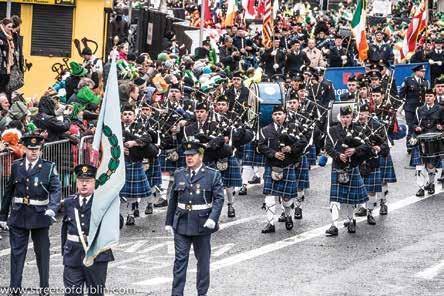Each year, nearly three million people line the oneand-a-half mile parade route to watch the procession, which takes more than five hours. Boston, Chicago, Philadelphia, and Savannah also celebrate the day with parades including between 10,000 to 20,000 participants.