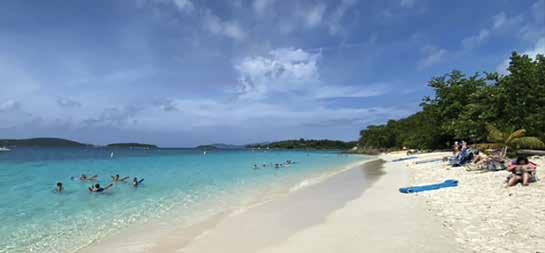 Virgin Islands National Park, which occupies 60 percent of St. John, is basically back to preIrma and pre-pandemic operation levels, with major attractions like the Reef Bay Trail, Trunk Bay beach with its famous snorkeling trail, the campground at Cinnamon Bay, and Annaberg Plantation all open to visitors. The Concordia Eco Resort, located within the park on the east side of St. John, reopened in early 2022, once again offering guests stays in eco-friendly studio rooms and tents with ocean views.