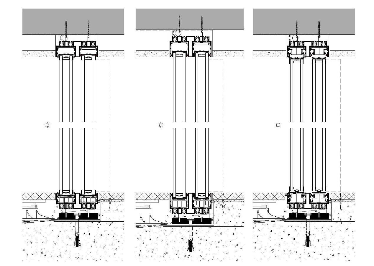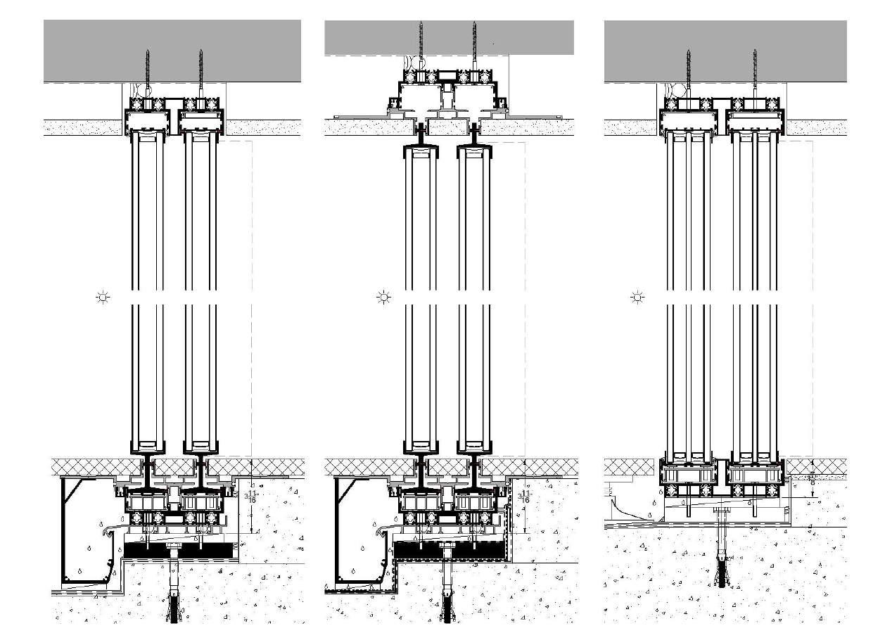 38 DRAIN is OTIIMA's hidden sill variant of the 38 Series, with optional hidden sub-frame and trench drain. All of the versatility and flexibility offered in the 38 CLASSIC are combined with an ingenious hidden sill design. Removable finish floor clips offer easy access for future maintenance. OTIIMA’s hidden sill design is notable for utilizing a single slot for each track. Some competitor’s designs require two slots per panel. It is designed to accept 38mm (1-1/2") insulated glass. The 38 series can also accommodate triple-pane glass, depending on the thermal demands of the project.