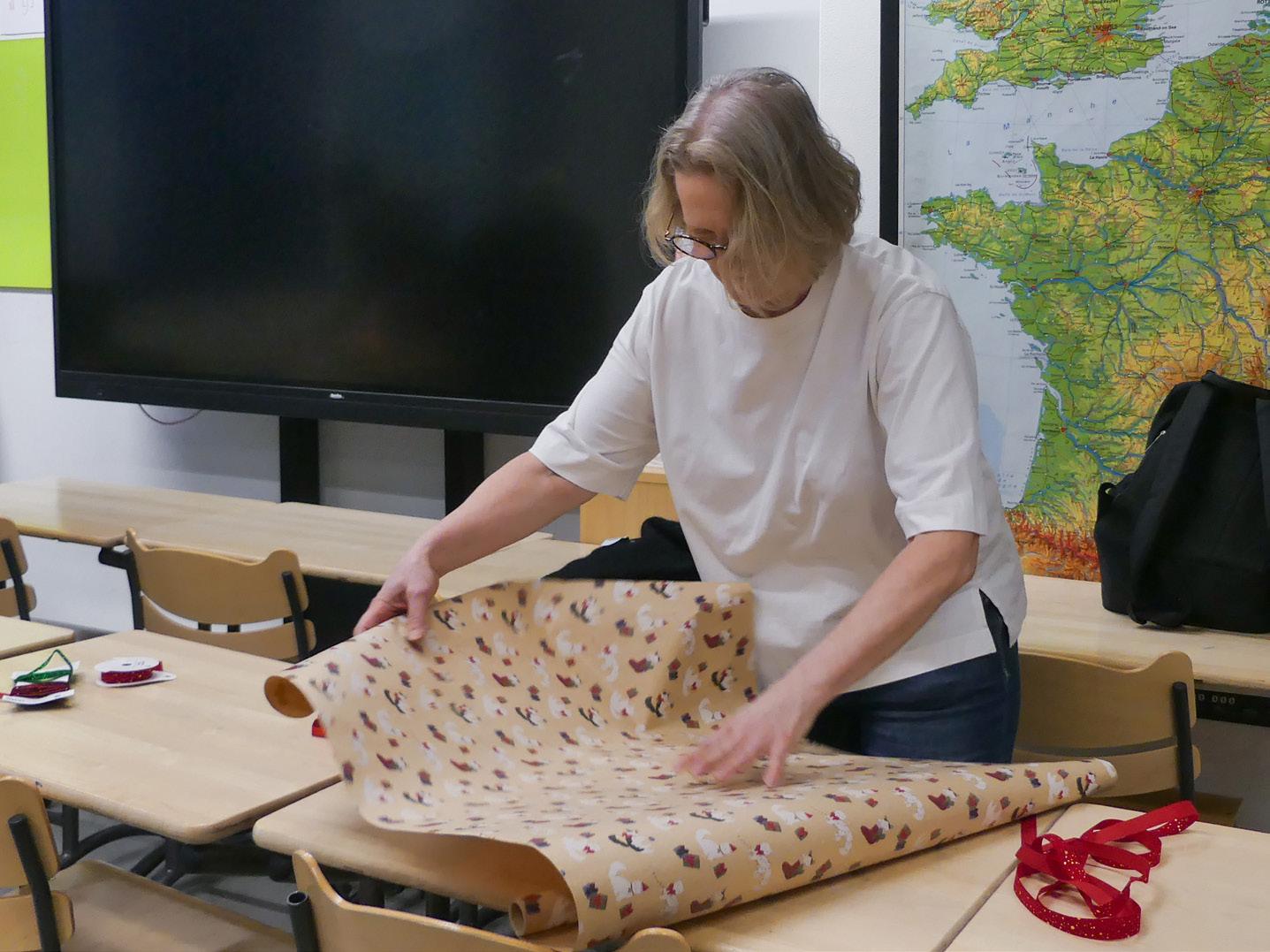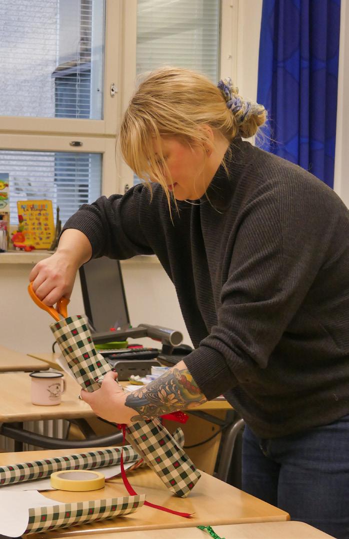 Tunnelma on jännittynyt, kun kolme koulumme opettajaa saapuu paikalle paketointitarvikkeiden täyttämään luokkaan. Olemme valinneet mahdollisimman vaikeasti paketoitavavia esineitä, jotka arvotaan paketoitaviksi opettajien kesken. Kenen sisäinen tonttu pääsee valloilleen tässä haasteessa?