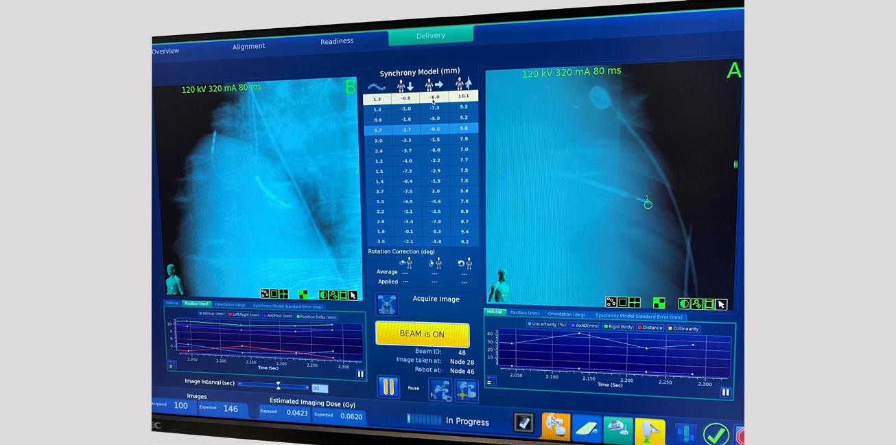 L’ablation des foyers de tachycardie ventriculaire par radiothérapie stéréotaxique réduit de façon importante la charge en arythmie chez les patients réfractaires au traitement standard. Il s’agit d’un traitement non invasif délivré en une seule fraction, ne nécessitant pas d’anesthésie. Cette prise en charge est facilitée sur Lille, du fait de la proximité géographique des deux pôles intervenants et grâce à un large accès à la radiothérapie stéréotaxique robotisée.