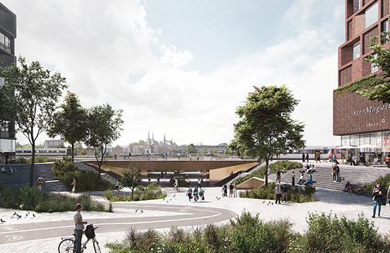 The Meanders bridges connections through the campus both at-grade and elevated, framing views to Dallas, The Trinity River and the campus itself while carving out spaces at its bends for experiences of wellness, health, activity, connection, community, ecology, nature, play, and sport.