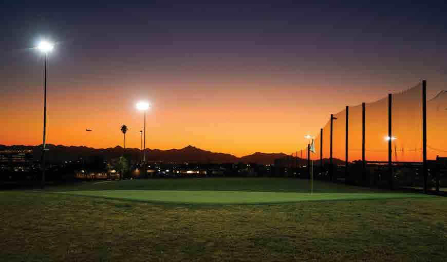 Grass Clippings at Rolling Hills then opened to night golf play on Dec. 1, 2023. More than 78 LED lights illuminate the golf course, which again, at night, is a par-3 layout. The experience includes great views of downtown Tempe, Sky Harbor Airport, downtown Phoenix, and the nighttime silhouette of Papago Buttes.