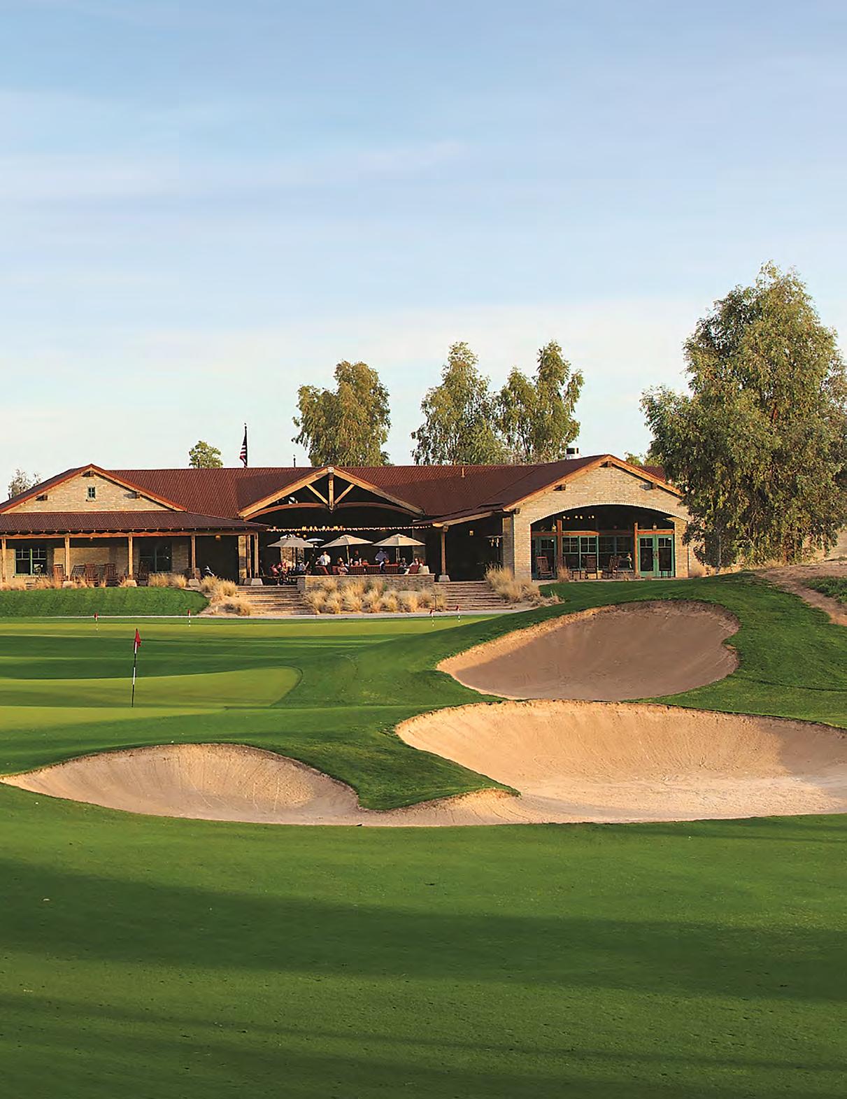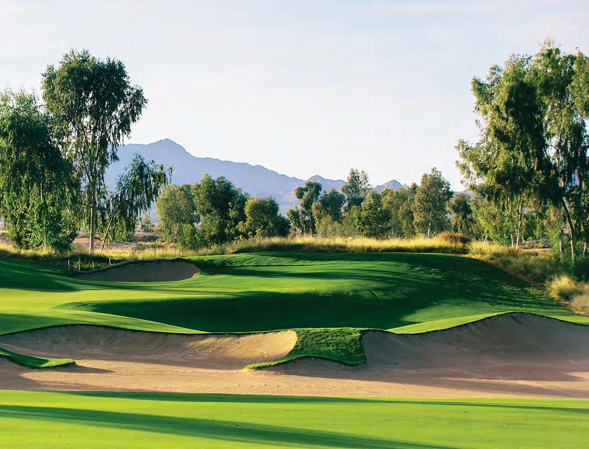Something about this course makes is always worth the drive to Maricopa. Renowned golf course architect Lee Schmidt and Brian Curley - with col laboration from Fred Couples - set out to make this championship layout, first envisioned as a private club before the Ak-Chin Native American Commu nity took ownership and turned it public and Troonmanaged, stand out among other courses in the Ari zona desert. You’ll hear people say the design team was going for an Australian Sand Belt-style course in the heart of the desert and you’ll see that the course is sweeping and dunesy, with more plunging fairways then your typical desert track.