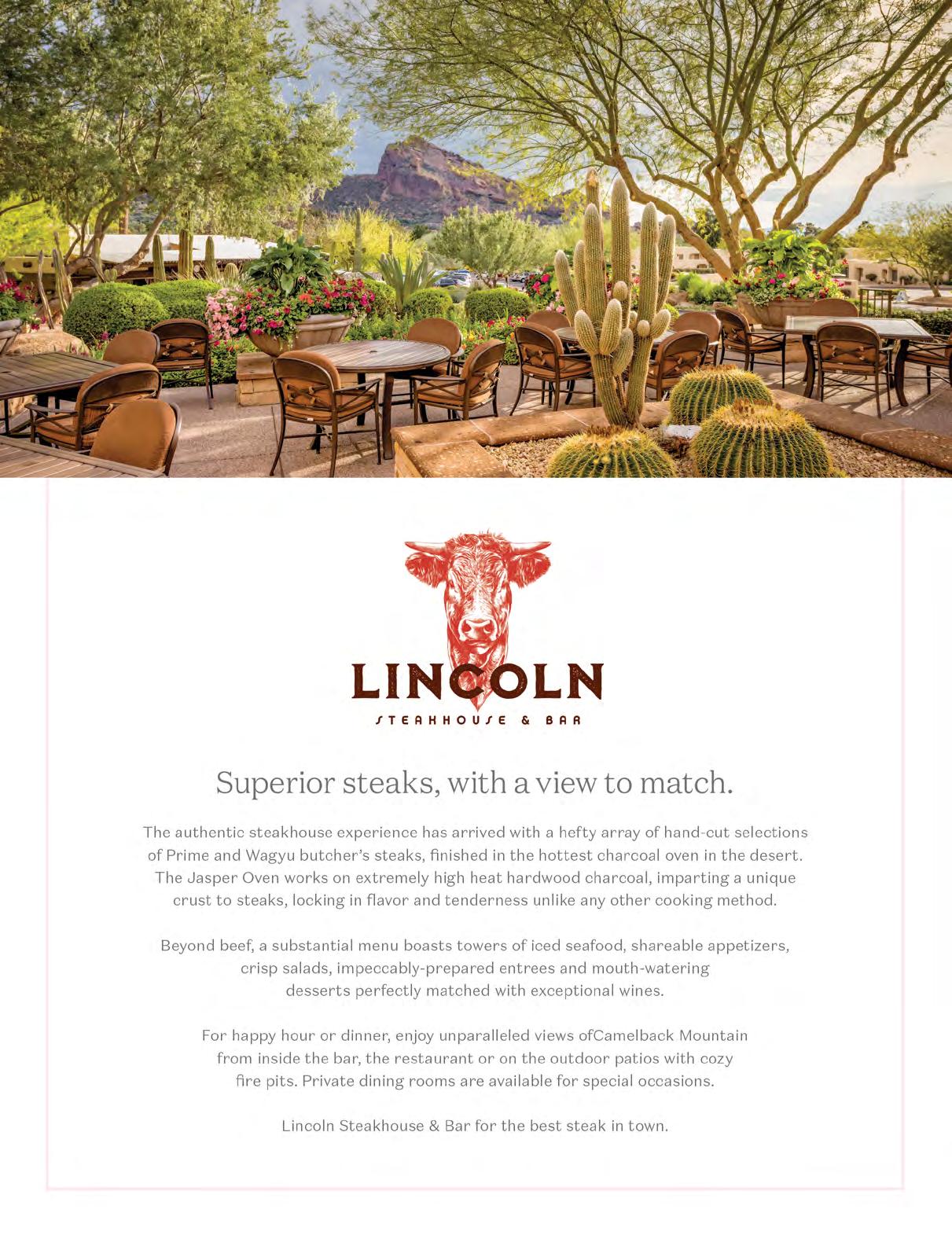 SE AT THE P H O EN I C I A N 6000 E. Ca m e lb a ck Roa d | S c ott sd al e , A z 852 51 480 . 214. 8000 jgs te a kh ous e sc ott sd al e . c om WEDNESDAYS, THURSDAYS & SUNDAYS 5-9PM FRIDAYS & SATURDAYS 5-10PM