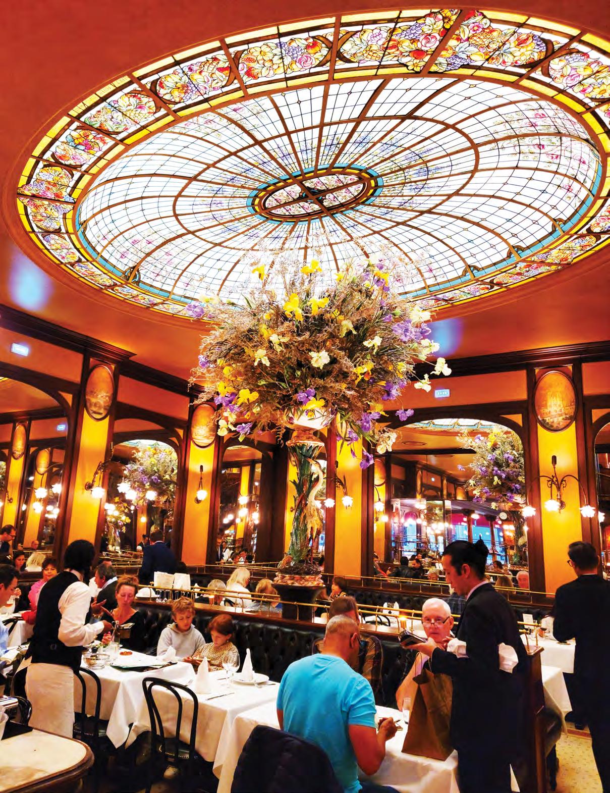 Over the course of decades, Bofinger expanded, and in 1919, the brasserie was refurbished in the stunning Belle Epoch style. The gorgeous Art Nouveau domed glass ceiling, elaborate ironworks, and beveled mirrors today are much as they were over 100 years ago.