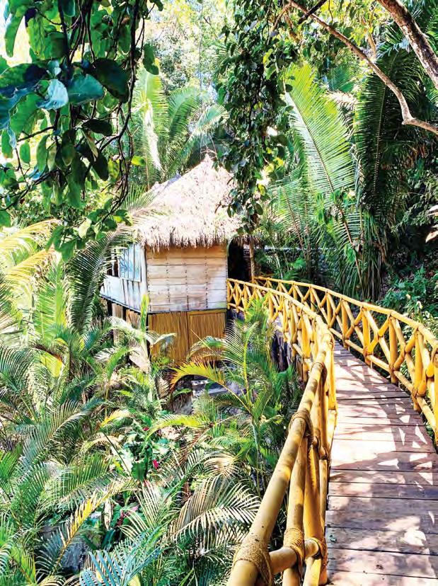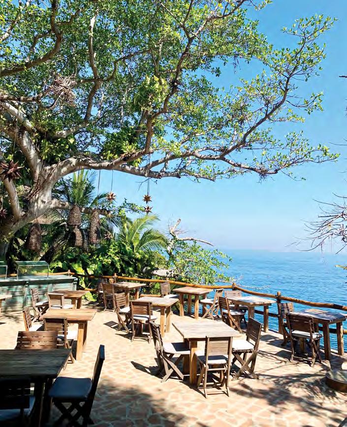and sanctuary for nesting birds. Upon reaching Las Caletas, which seems sandwiched between rocky cliffs and the sea, there are numerous activities for guests to fill their day. Vacationers can swim, laze in oceanfront hammocks or beach chairs, take a ceviche cooking class, sample mezcal with chapulines (toasted grasshoppers), dive or snorkel—all with company from colorful parrots, flamingos, and accommodating staff.