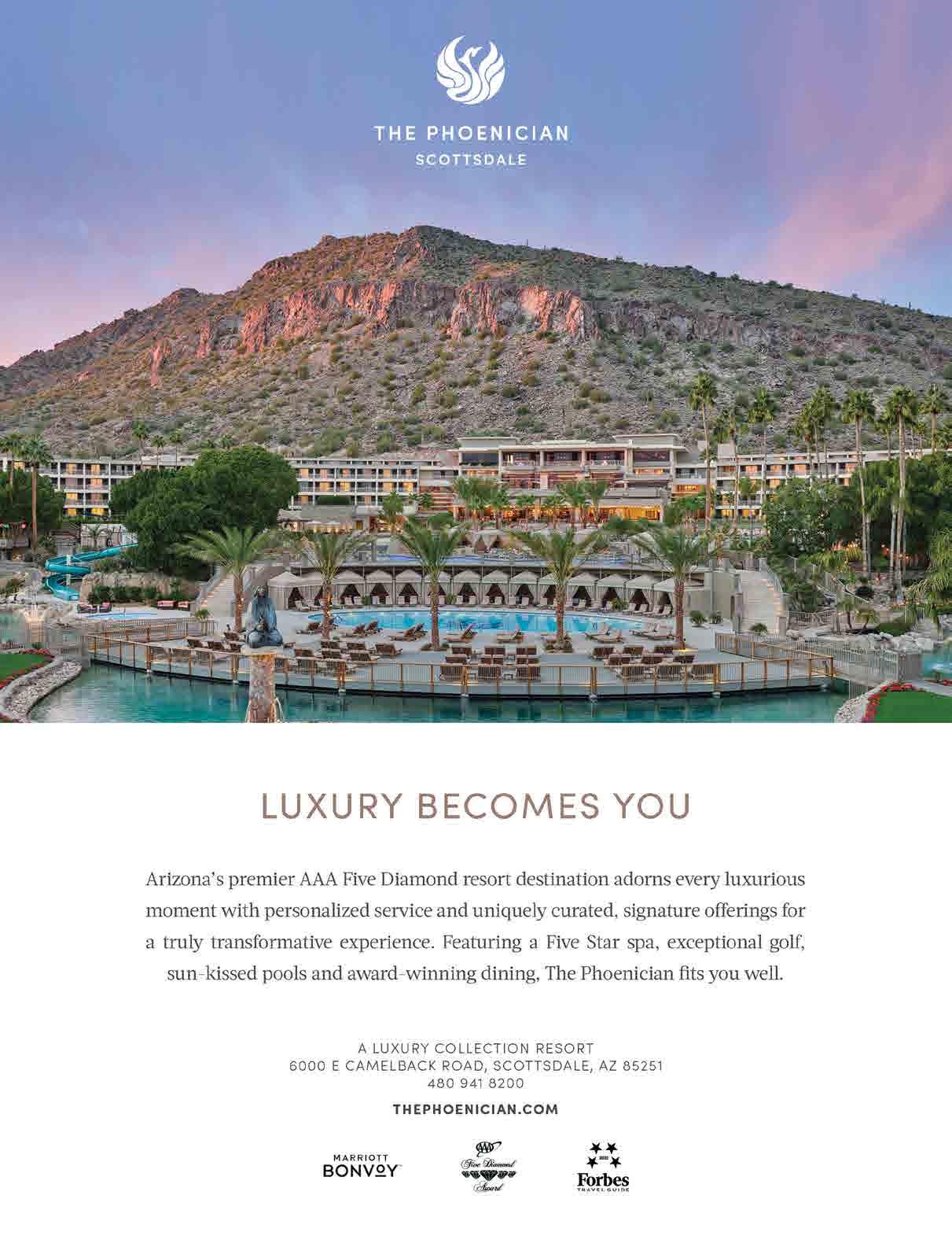@otl_PHX OTL_PHX magazine is published bi-monthly by Pristine Media, Inc. Executive, editorial,and advertising offices are located in Round Rock, Texas. Advertising rates furnished upon request. Advertisers warrant and represent that the descriptions and depictions of the products or services advertised are true in all respects. All advertising is subject to approval before acceptance. OTL reserves the right to refuse any ad for anyreason whatsoever. ©2024 by OTL. All rights reserved throughout the world. Reproduction in whole or part without the express written consent of OTL is strictly prohibited. Editorial queries and manuscripts should be directed to the editor via email, editor@otlgolf.com. All letters and their contents sent to OTL are sole property of OTL and may be used, printed, and published in any matter whatsoever without limit, obligation and liability to the author thereof. All views expressed in all articles are those of the authors and artists and not necessarily those of OTL or its advertisers. Manuscripts should be accompanied by self-addressed, stamped envelopes. OTL assumes no responsibility or liability for the return of unsolicited artwork, manuscripts or pictures. Printed in the USA. @otlphx FOR ADVERTISING OR EDITORIAL INQUIRIES 512.777.9879 OTLPHX.com 11 OTLPHX.COM Award winner of The Best of Magazines, Periodicals & Publications
