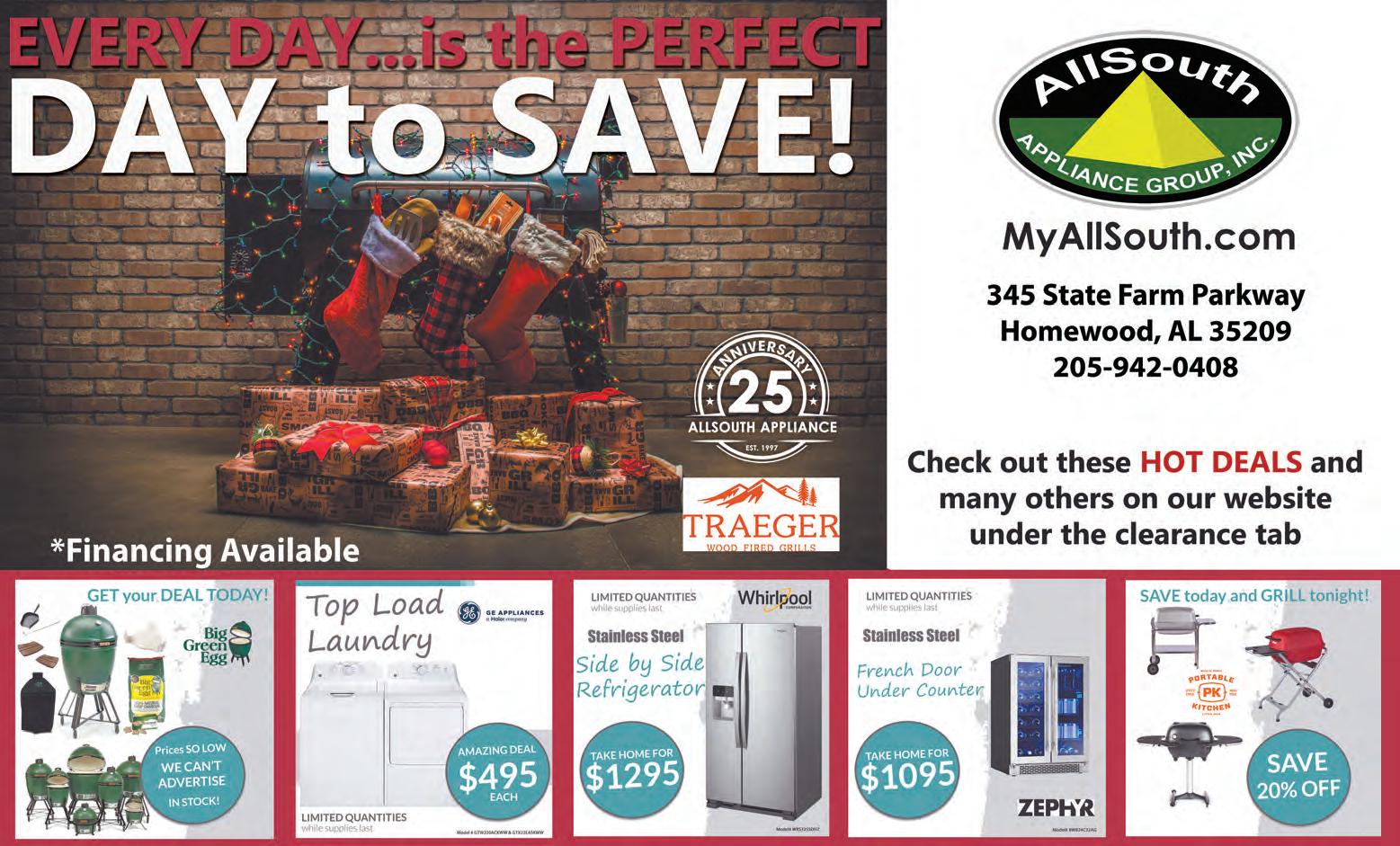 The city’s holiday season celebrations culminate with the annual Christmas Parade, featuring floats and per formances by Mountain Brook City Schools cheerleaders, dance teams and bands. The parade begins at Office Park and travels through Moun tain Brook Village. When: 3 p.m.