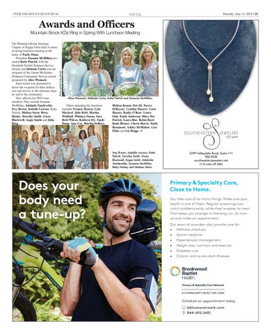 Renee Over The Mountain Journal, 205-823-9646 ph., 205-824-1246, faxcare of so many things. Make sure your You take Date: June health is one of them. Regular screenings can This is your AD PROOF from theearly, OVER THE MOUNTAIN the catch problems while they’reJOURNAL easier tofortreat. June 13, 2019 issue. Please contact your sales representative as soon as possible to approve That you in the long run. So man your ad or makekeeps changes. Youstronger may fax approval or changes to 824-1246. up and make an appointment. Please make sure all information is correct, and phone number! Ourincluding team ofaddress providers also provide care for: • Wellness checkups