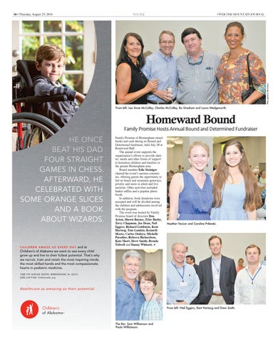Family Promise of Birmingham raised books and cash during its Bound and Determined fundraiser, held July 28 at Rosewood Hall. The annual event supports the organization’s efforts to provide shelter, meals and other forms of support to homeless children and families in the greater Birmingham area. Board member Edie Steiniger chaired the event’s auction committee, offering guests the opportunity to bid on beach and mountain getaways, jewelry and more in silent and live auctions. Other activities included basket raffles and a popular photo booth. In addition, book donations were accepted and will be divided among the children and adolescents involved with the program. The event was hosted by Family Promise board of directors Don Acton, Shawn Barnes, Tyler Busby, Terry Chapman, Joe Dean, Neil Eggers, Richard Goldstein, Kent Hartzog, Tom Lamkin, Kenneth Moore, Carlos Otalora, Michelle Paradiso, Rebecca Richardson, Kate Short, Drew Smith, Brenda Tidwell and Danny Whitsett. ❖
