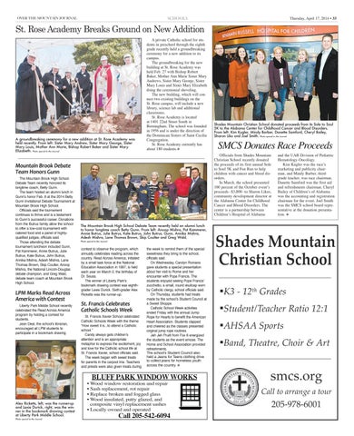 Shades Mountain Christian School ▪K3 - 12th Grades ▪Student/Teacher Ratio 12:1 ▪AHSAA Sports ▪Band, Theatre, Choir & Art