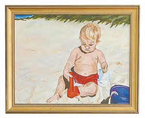 paintings of the Betheas’ son and middle daughter that Tumpy herself painted add color to the walls. Also upstairs, art depicting the house itself captures a moment in time in the 1980s, when it was painted grey with blue trim, and their daughter’s tricycle sat out front.