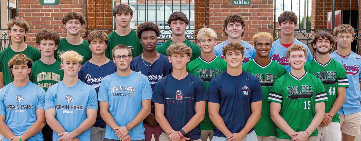 MEMBERS OF THE 2024 ALL OTM BALLBASEBALL TEAM are, front row from left: Coleman Gray, Spain Park; Matthew Widra, Spain Park; CJ Gross, Spain Park; Bryson Morman, Oak Mountain; Kevin Jasinski, Oak Mountain and Carson McFadden, John Carroll Catholic. Middle: Hunter Keller, Mountain Brook; Jack Ross, Homewood; Jeremiah Gary, Homewood; Noah Smith, John Carroll Catholic; Aden Malpass, John Carroll Catholic and Jackson Miller, John Carroll Catholic. Back: Kenneth Diddell, Mountain Brook; James Graphos, Mountain Brook; Caleb Barnett, Mountain Brook; John Robicheaux, Mountain Brook; John Paul Head, Vestavia Hills; Chase Rafferty, Vestavia Hills and William Tonsmeire, Jr., Vestavia Hills. Not pictured: Jake Souders, Briarwood; Cooper Sain, Homewood; Mason Blasche,