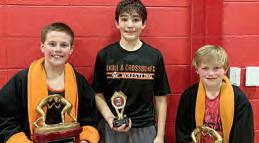 Clayton Gaydosh, a third-grader, won the 80-pound youth division, and his brother Kenny Gaydosh, a sixthgrader, took first place in the 112-pound youth division while competing for the Skull & Crossbones Wrestling Club in Hoover during the youth state championships Feb. 3-4 at Thompson High School in Alabaster.