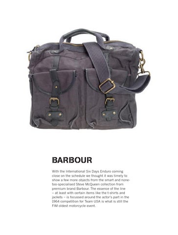 barbour With the International Six Days Enduro coming close on the schedule we thought it was timely to show a few more objects from the smart and nonetoo-specialised Steve McQueen collection from premium brand Barbour. The essence of the line – at least with certain items like the t-shirts and jackets – is focussed around the actor’s part in the 1964 competition for Team USA is what is still the FIM oldest motorcycle event.