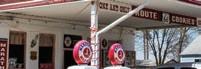 Stop for some grub at this restaurant whose exterior is modeled after that of the Mother Road’s legendary Lucille’s Service Station. It has three uniquely decorated