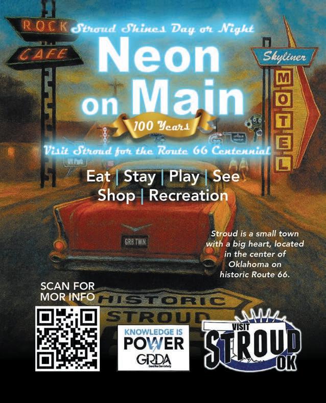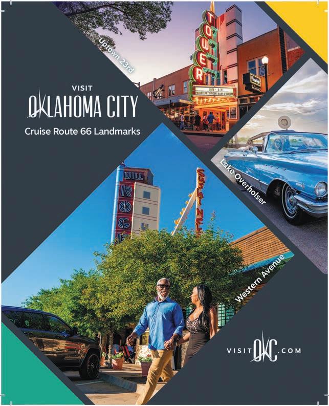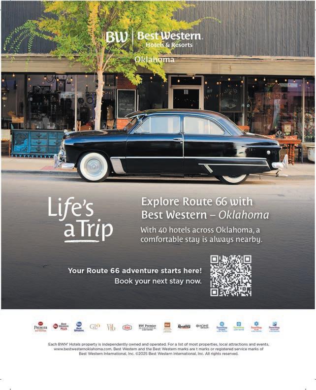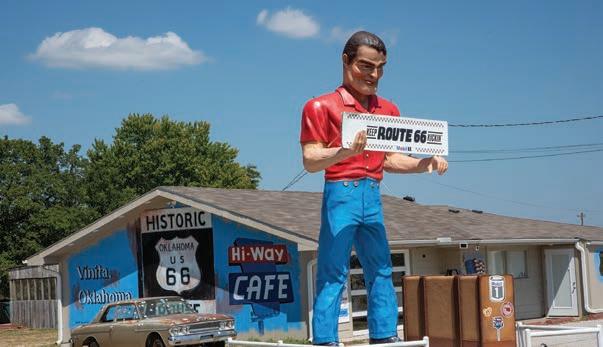 Along this stretch, you’ll visit Mickey Mantle’s hometown, explore many fabulous museums, and snap selfies with some of Oklahoma’s largerthan-life icons.