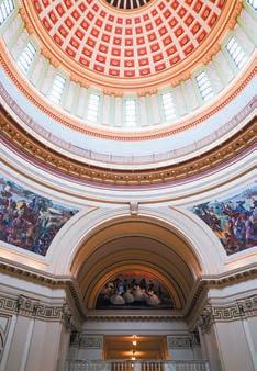 This historic building embodies the stories of Oklahoma and its diverse people. From his vantage atop the Capitol, “The Guardian,” a 22-foot-tall bronze sculpture, watches over the state. The sculptures and artwork of the 100-yearold Capitol complement the important work conducted within its offices.