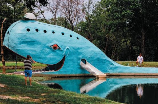 Stop for a selfie with the largest piece of Route 66 kitsch art in Oklahoma. This 80-foot-long smiling whale has welcomed travelers since the early 1970s. Today, you’ll find nature trails, a