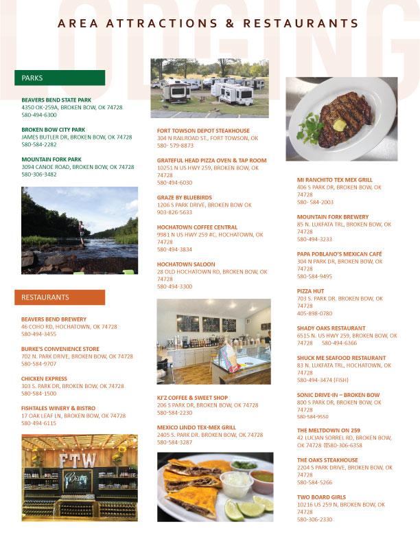 If you want to find out what's around McCurtain County, start with the McCurtain County Area Lodging Guide. This is the first step in choosing the perfect accommodations for your family with the right amenities. Bringing a whole group--choose a 1-5, or 7 or 8 bedroom cabin so everyone will have their own space. You will also find the perfect place to meet the needs of smaller families or a romantic retreat with a cozy fireplace just for a couple. Memories will be made here with the spectacular beauty of nature to enjoy while you horseback ride, bird watch, paddle board, canoe, fish, hunt, hike, golf, bike, ride the train, ATV, go karts or jet skis.