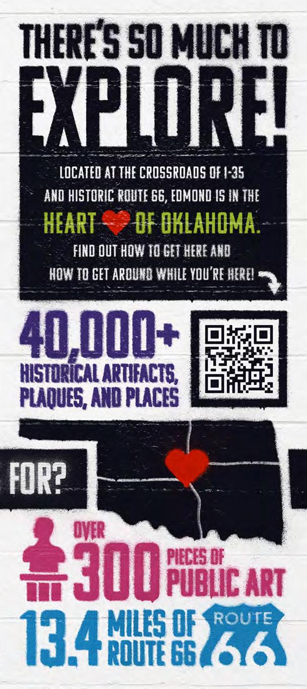 See landmarks, photo spots, and entertaining destinations along the Mother Road in Edmond 15 VISITEDMONDOK.COM/ROUTE66