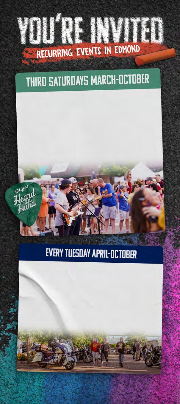 Downtown is transformed into a family-friendly, block party-style festival with more than 60 retail and food vendors, outdoor games and live performers. A wellloved tradition, hosted by Citizens Bank of Edmond.