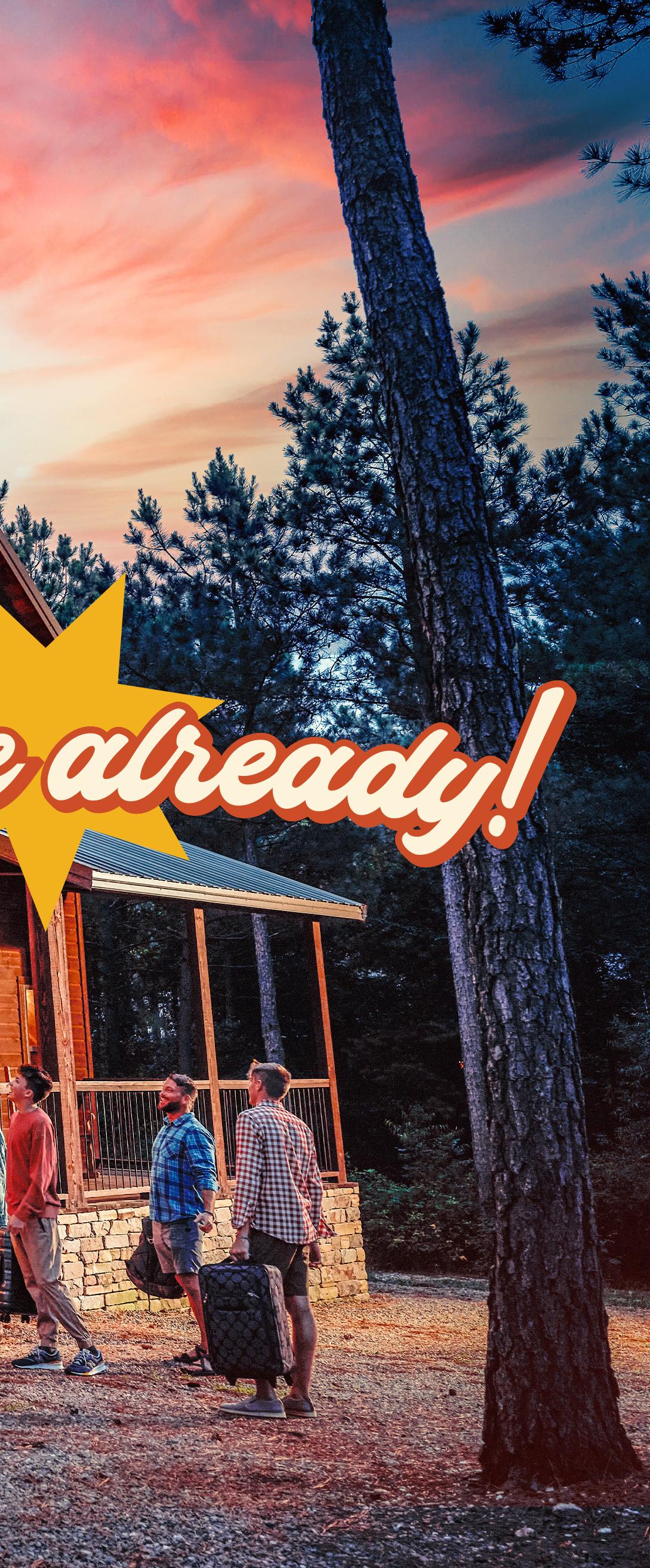 BOOK IT HERE FOR WEEKEND GETAWAYS FAMILY VACATIONS FISHING & HUNTING TRIPS BACHELOR & BACHELORETTE PARTIES WEDDING ANNIVERSARIES CLASS TRIPS SPRING BREAK ADVENTURES CORPORATE RETREATS WINERY HOPPING SASQUATCH SEARCHING DOWNLOAD THE APP