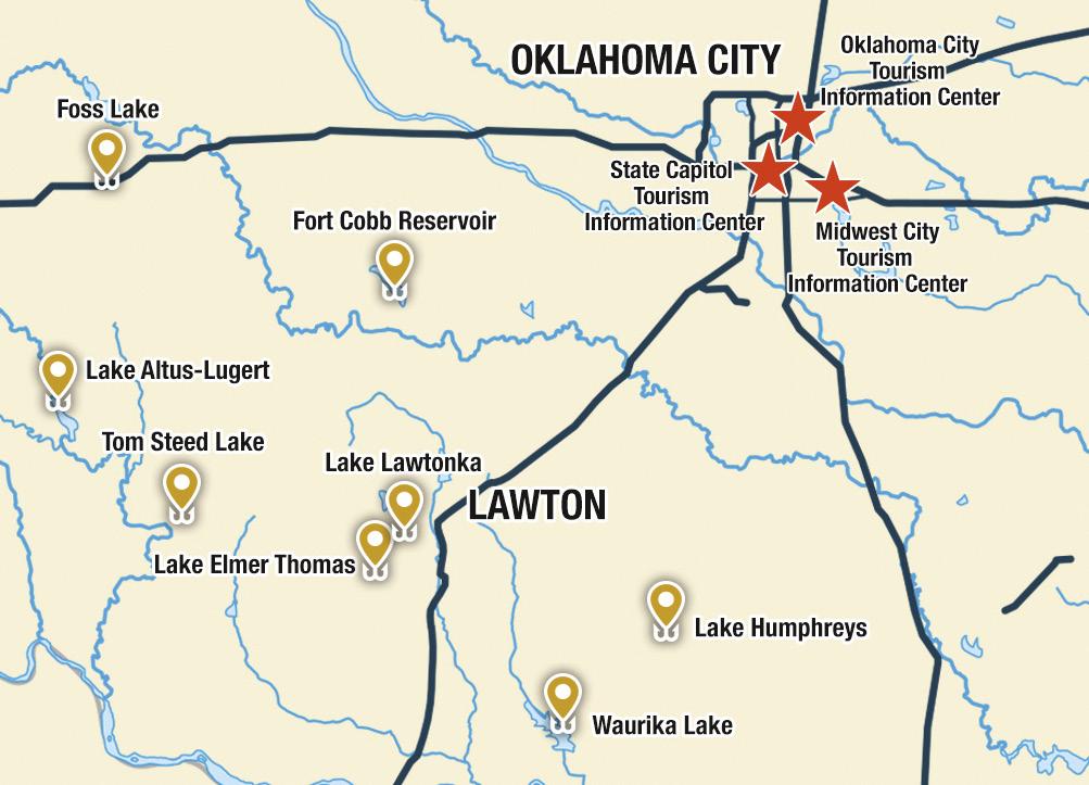 Featured species list selected by Oklahoma Department of Wildlife Conservation. Please see each lake or river’s entry for full species list. Loops subject to change. For the latest updates and more details on the Fishing Trail lakes and rivers, visit Fishin OK .com