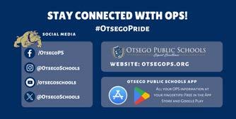 OPS ConneCtion is published 4 times per year with printing by RiverRun Press, 600 Shoppers Lane, Parchment, MI 49004. It is distributed to all residents of the Otsego Public Schools district. Residents in the district who live north of “G” Avenue receive their newsletter via the Community Shopper’s Guide. Residents who live south of “G” Avenue, and School of Choice families, receive their newsletter via the U.S. Post Office. Changes of address, suggestions, and questions should be signed and sent to Holly McCaw, Director of Communications, Otsego Public Schools, 400 Sherwood Street, Otsego, MI 49078-1281. For more information contact Holly at (269) 694-7910 or hmccaw@otsegops.org.