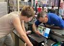 Above: Level 3 students and their Links gather for a group picture. Left: Mr. Moore shows a student how to use the sales register.