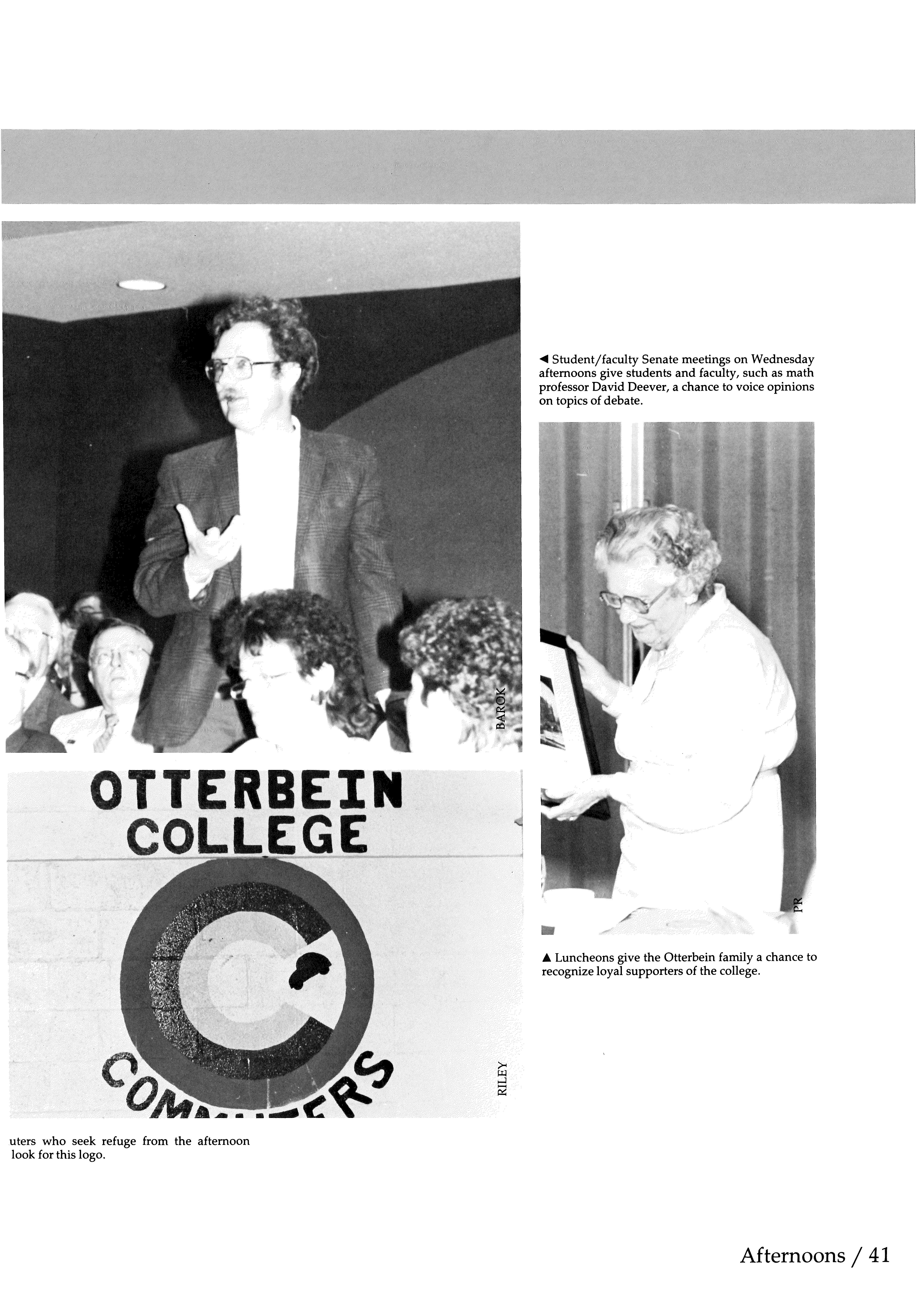 I'll remember Andy most when I think of Otterbein's student publications. As members of the Publications Board, he and I shared some of the responsibility for guiding student publishing efforts. Sometimes Andy's wealth of knowledge and expert sense of publishing seemed hidden behind a shy exterior. But when he spoke, I knew I should listen intently. His constructive input and sincere suggestions always shed insight into problems and frustrations.