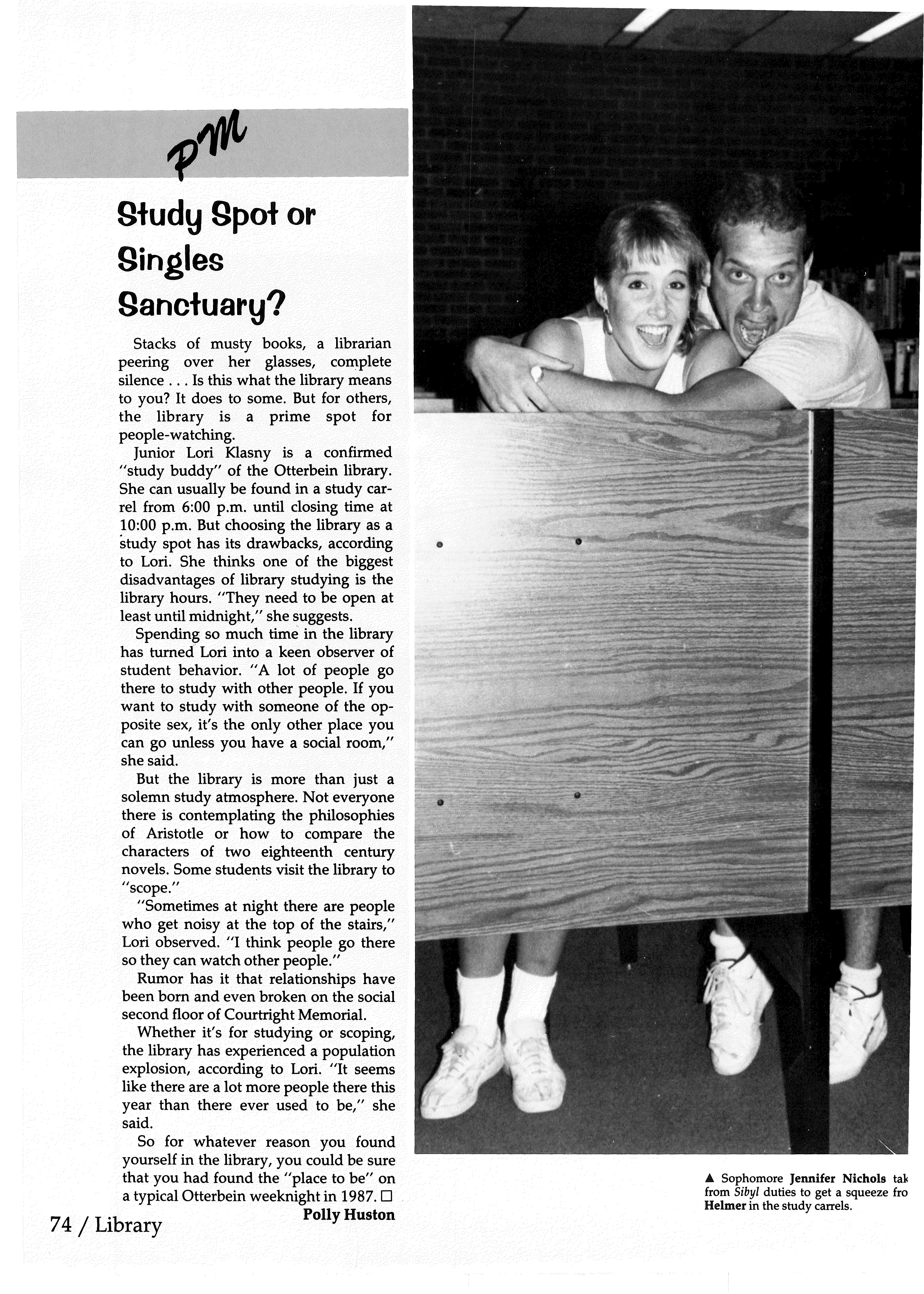 So for whatever reason you found yourself in the library, you could be sure that you had found the "place to be" on a typical Otterbein weeknight in 1987. D