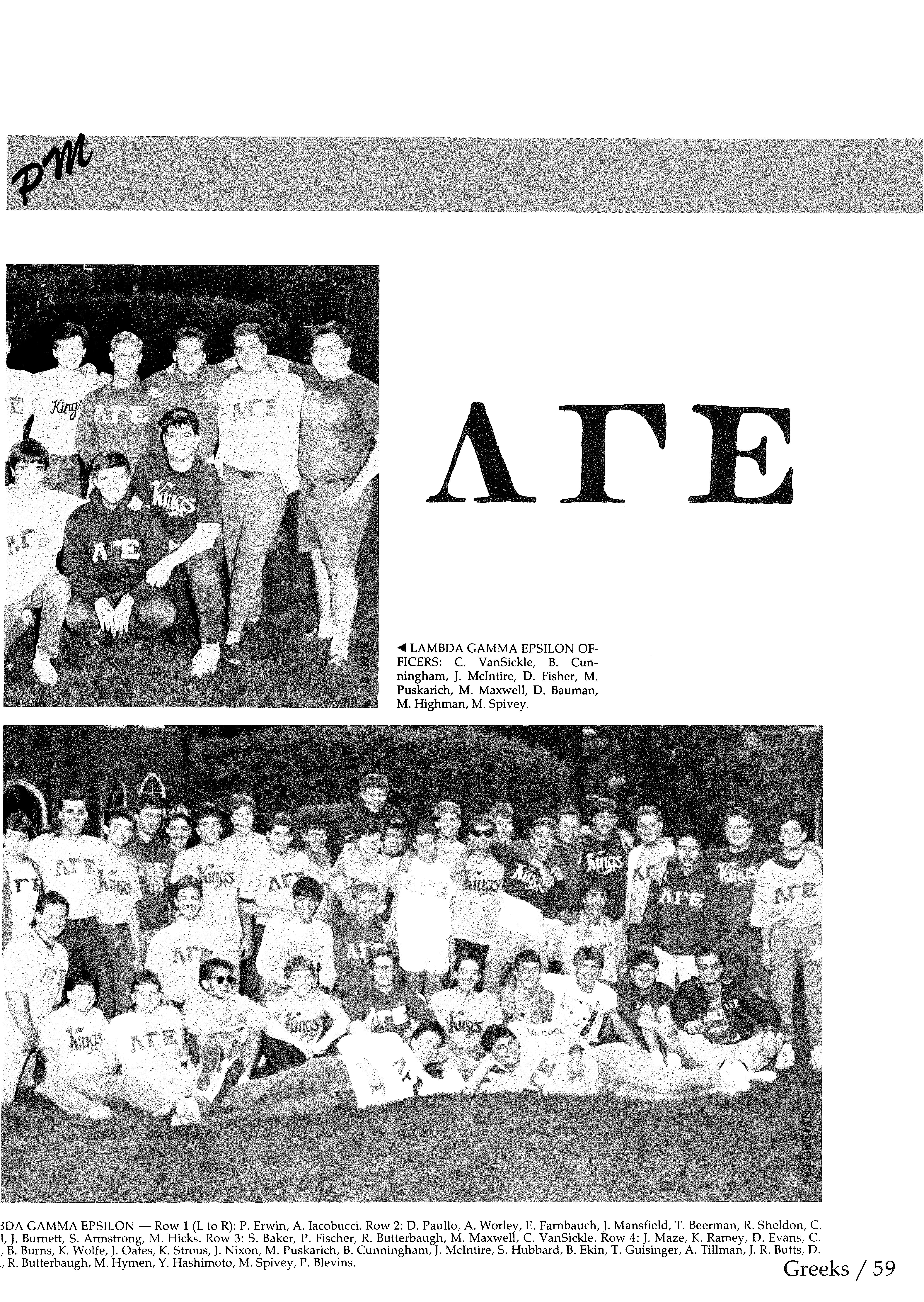 A TAU EPSILON MU - Row 1 (L to R): J. Waibel, K. Allen, R. Rogers, N. Friedman, C. Minton, B. Pasden, B. Walton, J. Timko, B. Moellendick, C 2: B. Fritsch, A. Delancey, B. Herring, R. VonSeggem, L. Belardo, D. Knox, G. Wienewski, C. Harroun, T. Tyler, J. Stambach, L. Hartley, R. C Mesewicz, T. Rainsburg, A. Edwards, M. Bartley, J. Thompson, J. Nichols. Row 3: T. Shaffer, T. Stobart, M. McTygue. Row 4: B. Brinker, S. Gaske tos, K. Zinn, J. Martin, C. Martelino, T. Boger, K. Cole, S. McQuay, D. McElhaney, J. Neal, N. Neary, L. Rea, L. Stevenson, P. Hall. Row 5: S. Flavi1 Beach, K. Fryling. Row 6: N. Presley, L. Gravely, K. Beimly, S. Moellindick, A. Dallas, C. Grant.