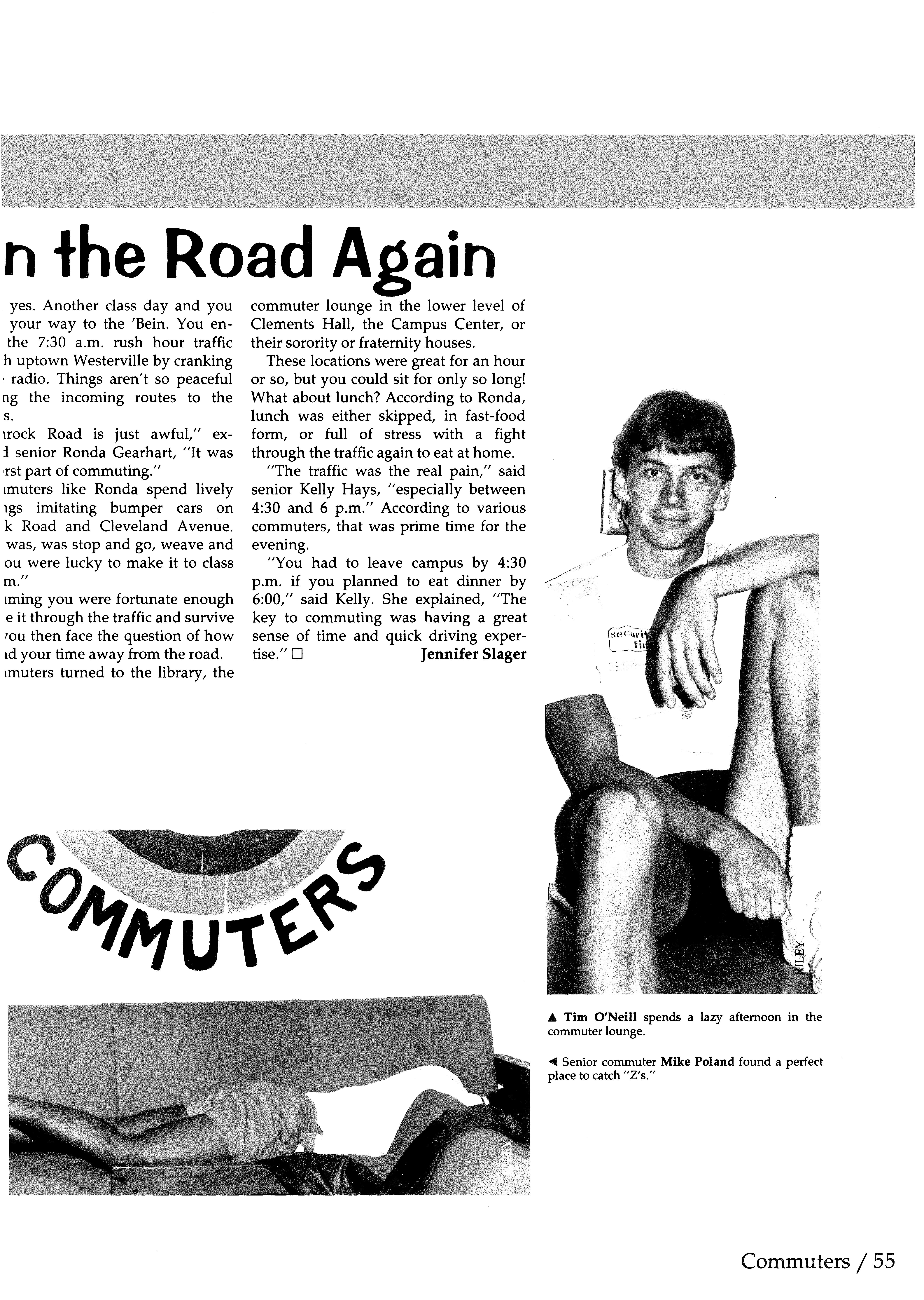 A This Davis Annex resident doesn't seem too thrilled about getting ready for her morning class. Junior Robin Rogers spends a morning in the Campus Center office.Morning classes don't seem to • These Otterbein students don't agree with senior Stacie Gilg. "Keep · seem to mind a.m. academics. those eyes open!"