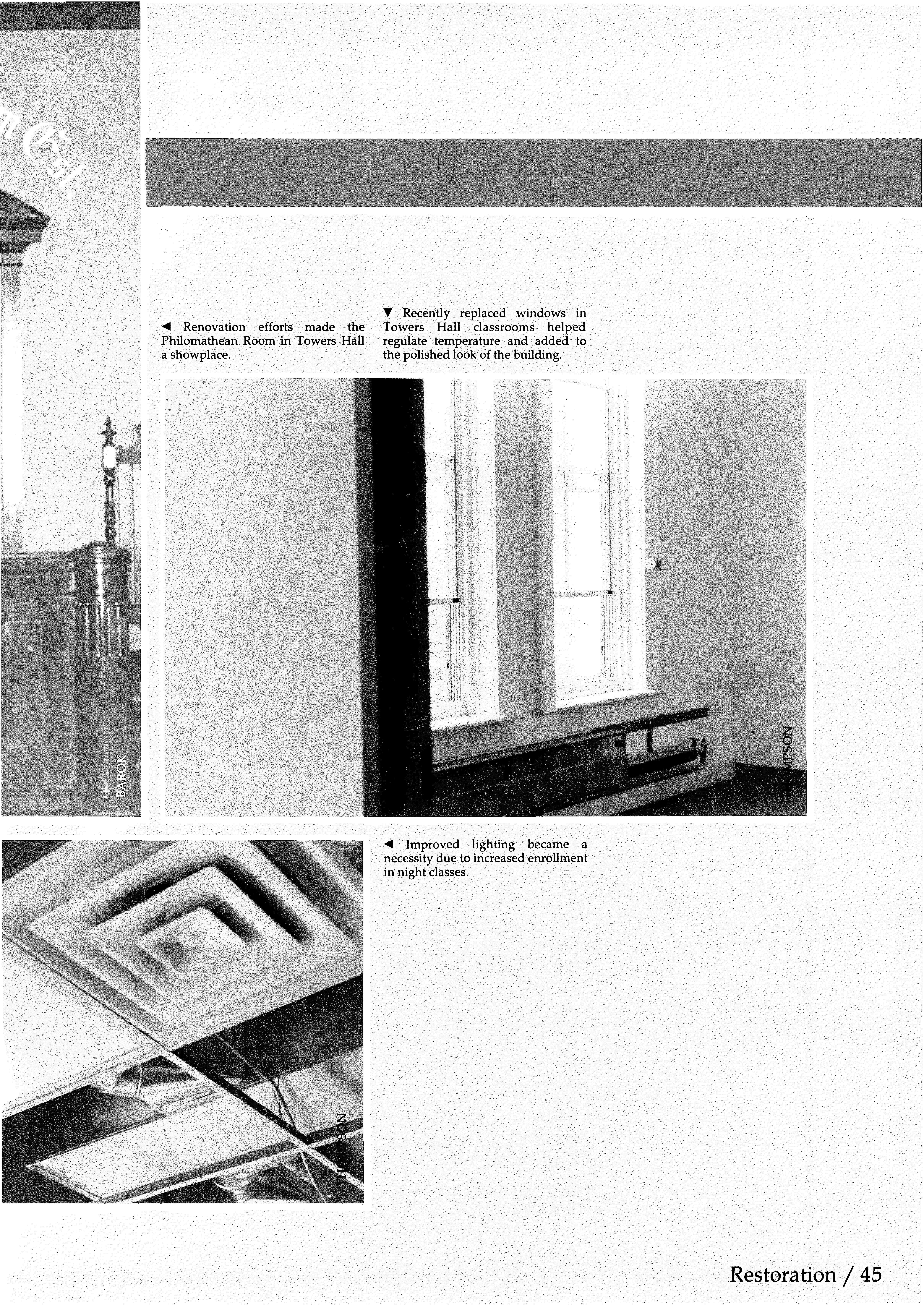Also, a theatre endowment program was organized in the fall of 1986 to benefit two critical areas of the department: talent grants for students and special capital projects.
