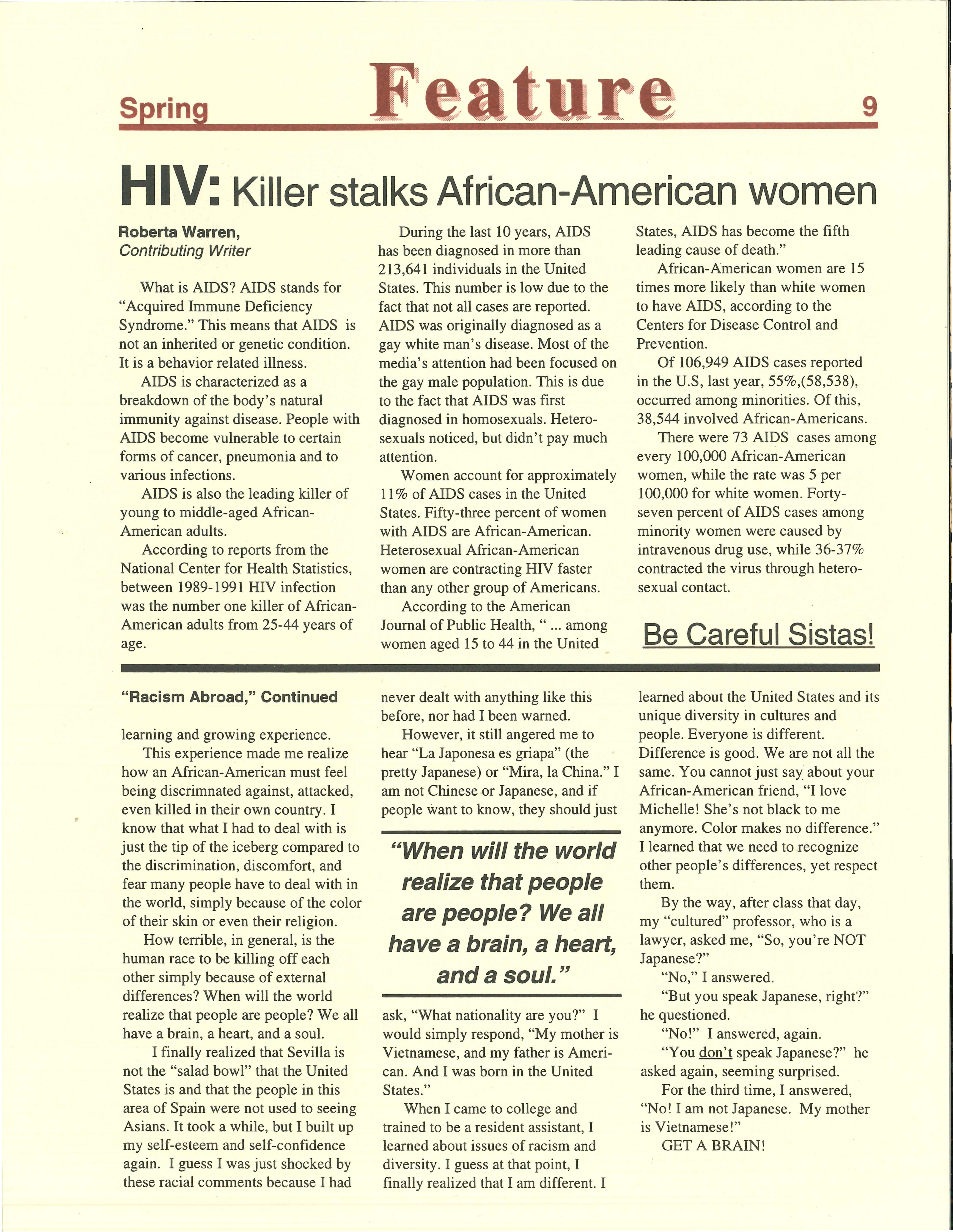With all of the negative political and social events occurring across the country, I believe that it is imperitive that I take time out to acknowledge the positive advancements that are occurring both in the African-American Student Union and in the campus community because of the A.A.S U
