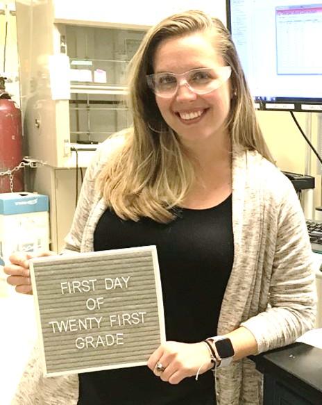 In August 2020, Rebecca Carter ’15 (BS Environmental Science, BA Art with Studio Concentration) graduated with her Ph D from the University of Notre Dame (UND) in the Department of Civil and Environmental Engineering and Earth Sciences. Her research at UND focused primarily on the investigation of rare earth element signatures (REE) and surrogate nuclear melt glass for nuclear forensics. Nuclear forensics is the study of nuclear and other radioactive materials to determine origin and history of the material. Elemental signatures, such as REE signatures, can provide key information about the geology and formation of uranium ores and are therefore vital for source identification of intercepted illicit materials. As part of her research, batch sorption techniques were used to probe the solid-water interface of REE to UO2, a common nuclear material. The stability of REE signatures were investigated using techniques such as powder x-
