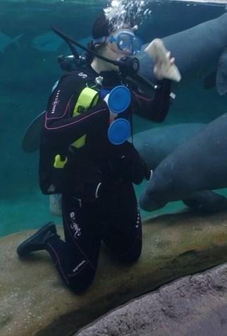 Megan Masciola ’23 takes a morning dive with the Manatees at the Columbus Zoo and Aquarium.