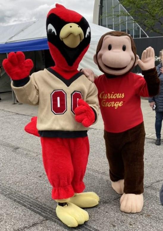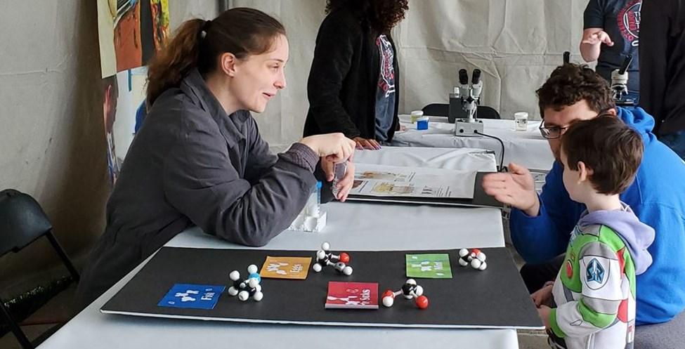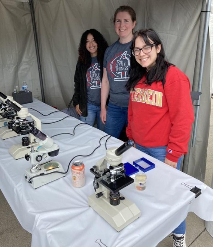 sure looked real! Biochemistry and Molecular Biology major, Olivia Miller ’23, convinced people to waft her vials of stinky sock and rotten egg smells, while Dr. Bennett, BMB major Olivia Brickey ’23, and Chemistry major Olivia Smith ’22 amazed with all the critters they helped people see swimming around under the microscope. Erin Ulrich did her part by making sure Cardy made a special appearance! Thanks to these volunteers and COSI Science Festival for making it all happen.