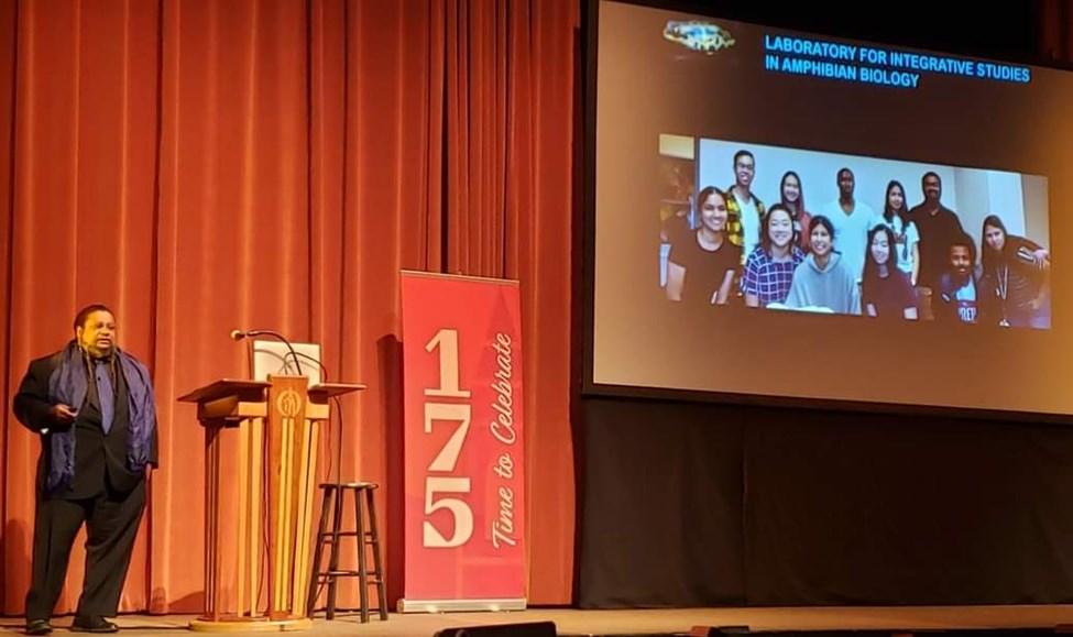 This year, we welcomed Dr. Tyrone Hayes to campus for two days for the Science Lecture Series. Dr. Hayes’ research focuses on endocrine disrupting contaminants, particularly pesticides, and their impact on wildlife and human health. He also works to bring to light and address environmental justice concerns associated with targeted exposure of racial and ethnic minorities to endocrine disruptors and the role that exposure plays in healthcare dispari-