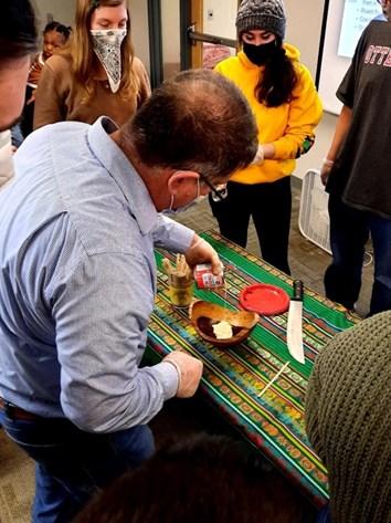 Dr. Lehman mixing chocolate