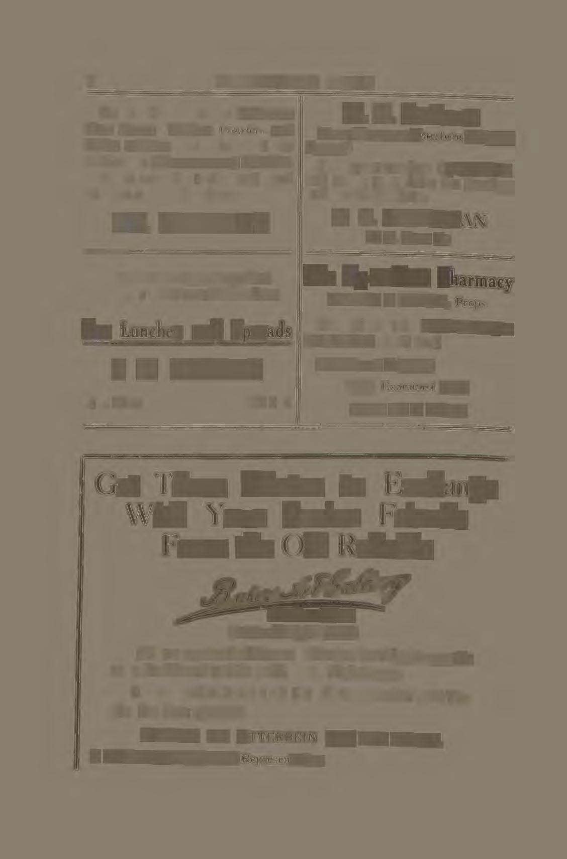 TheColumbus.TailoringCo. and TheGlobeTailoringCo. Suitsneatlycleanedandpressed. BURIS,BRIDENSTINE & CO. EDUCATIONALSPECIALTIES, HOMECHAUTAUQUAEQUIPMENT POWERS,MEYERS & CO., VALPARAISO,IND. SOLEDISTRIBUTORSBySubscriptionOnly EXCLUSIVEFIELD-CLOSESTCOOPERATION WRITEFORPARTICULARS. Yo ur Co mmen cement Guests \\" ill fine\ the finest me:=tls. the best ser\'ice, and a cordial welcome awaiting them at TheWhiteFrontRestaurant 5S.StateSt. R. E. NO TH S TI N E, Pr o p THE UniversityBookstore welcomes the "Old Grads" and the Students to 24 N. State, the Headquarters for SouYenirs, in the shape of Pins, Fobs. Rings, Spoons, Pennants, Fountain Pens, Popular Copyrights, and Fancy Books.