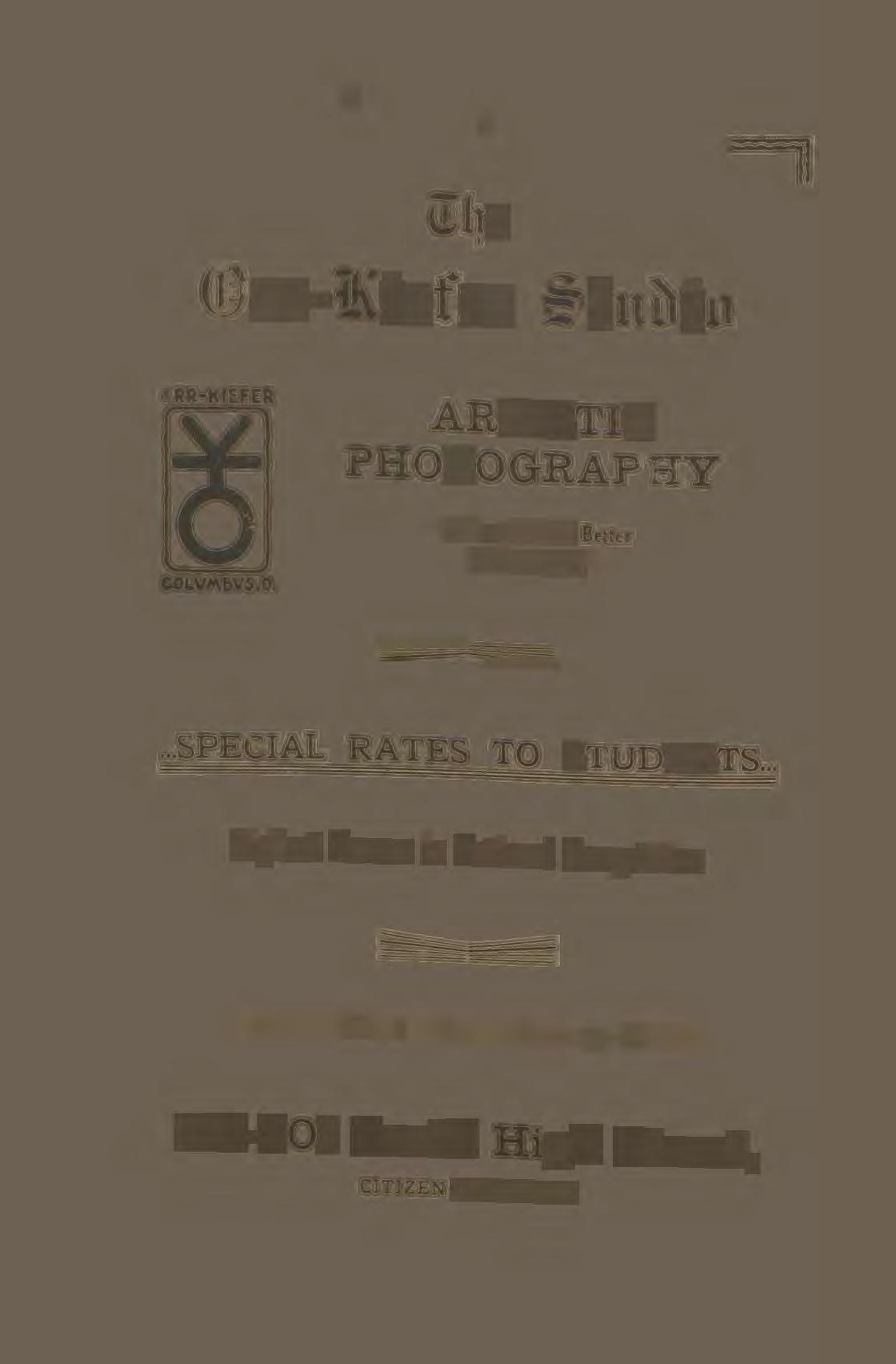 IDqr ®rr-l(trftr ~tuhtn COLV#l\6V~,O. ARTISTIC PHOTOGRAPHY / 'Just a Little Bit Better than the Best." -=::::::::.::: ...SPECIAL RATES TO STUDENTS ... Highest Honors in National Competition We do All Kinds of Picture Framing---RIGHT. 199-201 South High Street, CITIZEN PHONE 3720