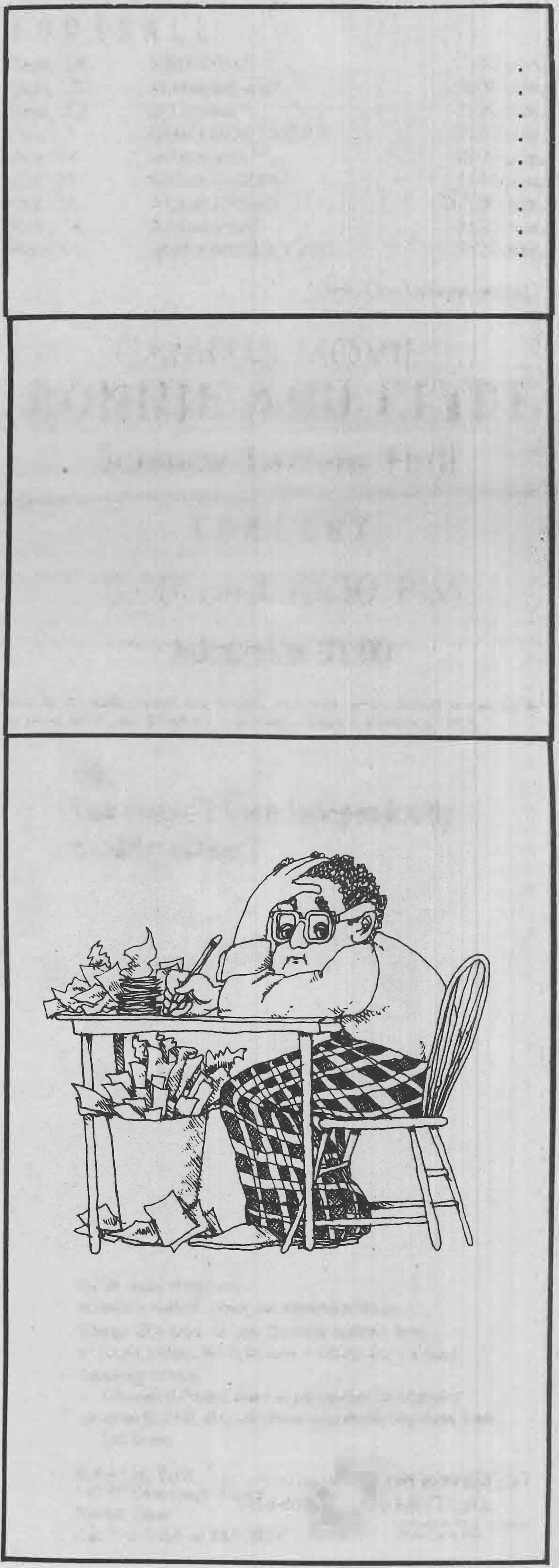 Staffwriters and columnists: John Aber, Mark Bixler, Mike Darrel, Tony Del Valle, Charlie Ernst, Kathy Fox, R. Steven Graves, Susan Hall, John Mulkie, John Riley,Sue Risner. Opinions expressed in the Tan and Cardinal, unless bylined, are those of the editorial board and do not necessarily reflect those of the college or its staff.
