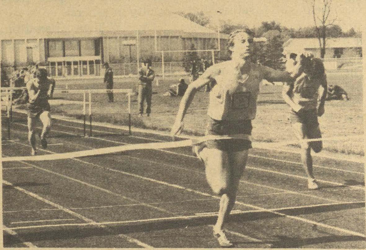 Freshman Dave Miller won two events, taking the 120 yard high hurdles (14.9) and the 40 yard interm e diat e d hurdles (55.0). Coach Miller labeled the efforts as "real good performances."