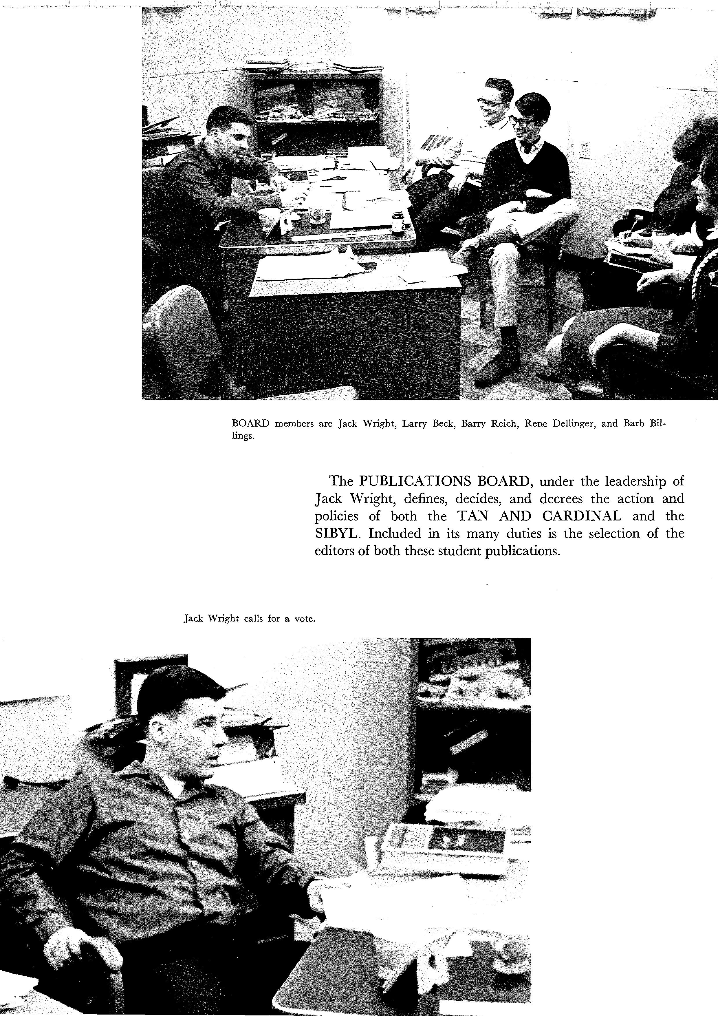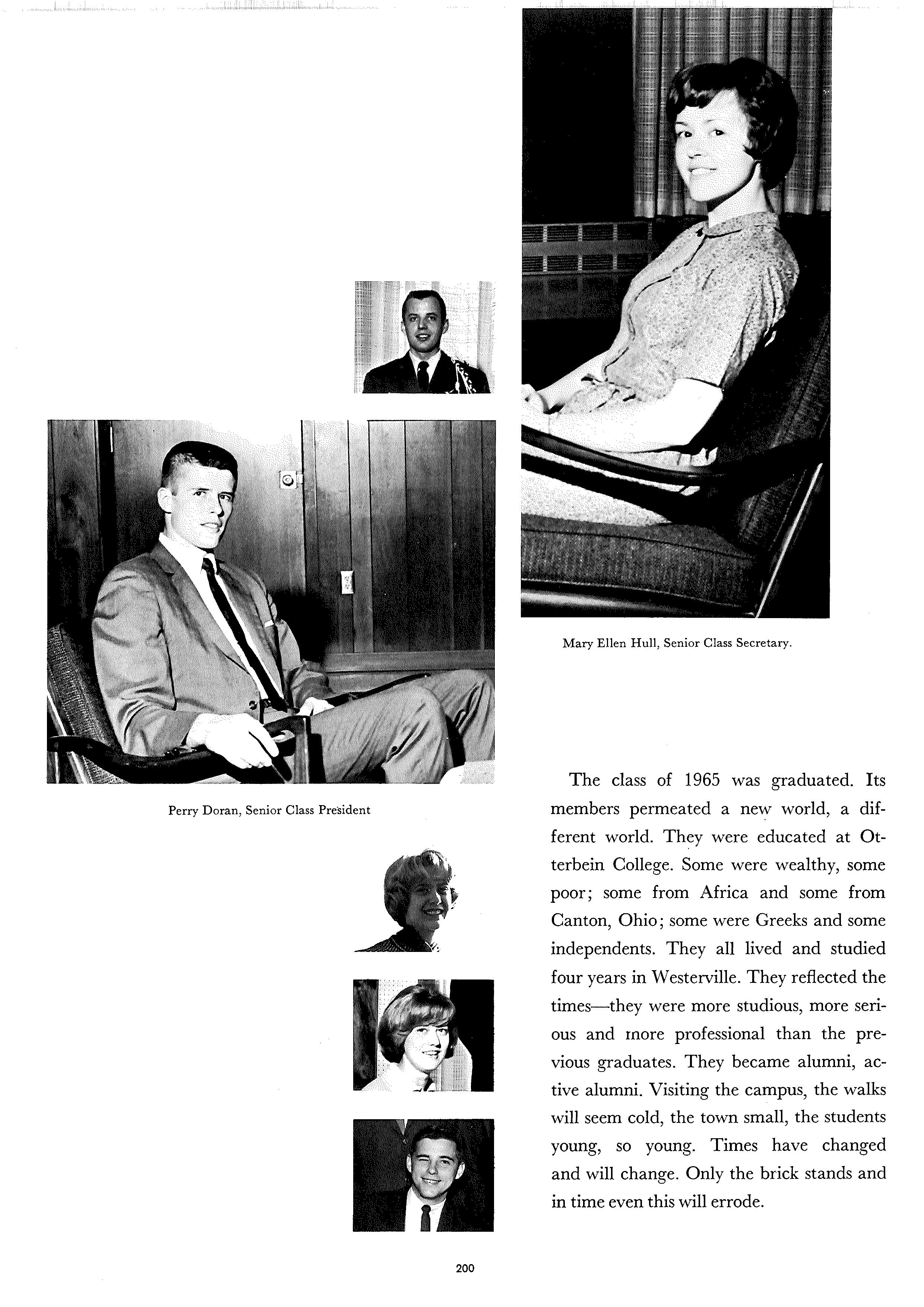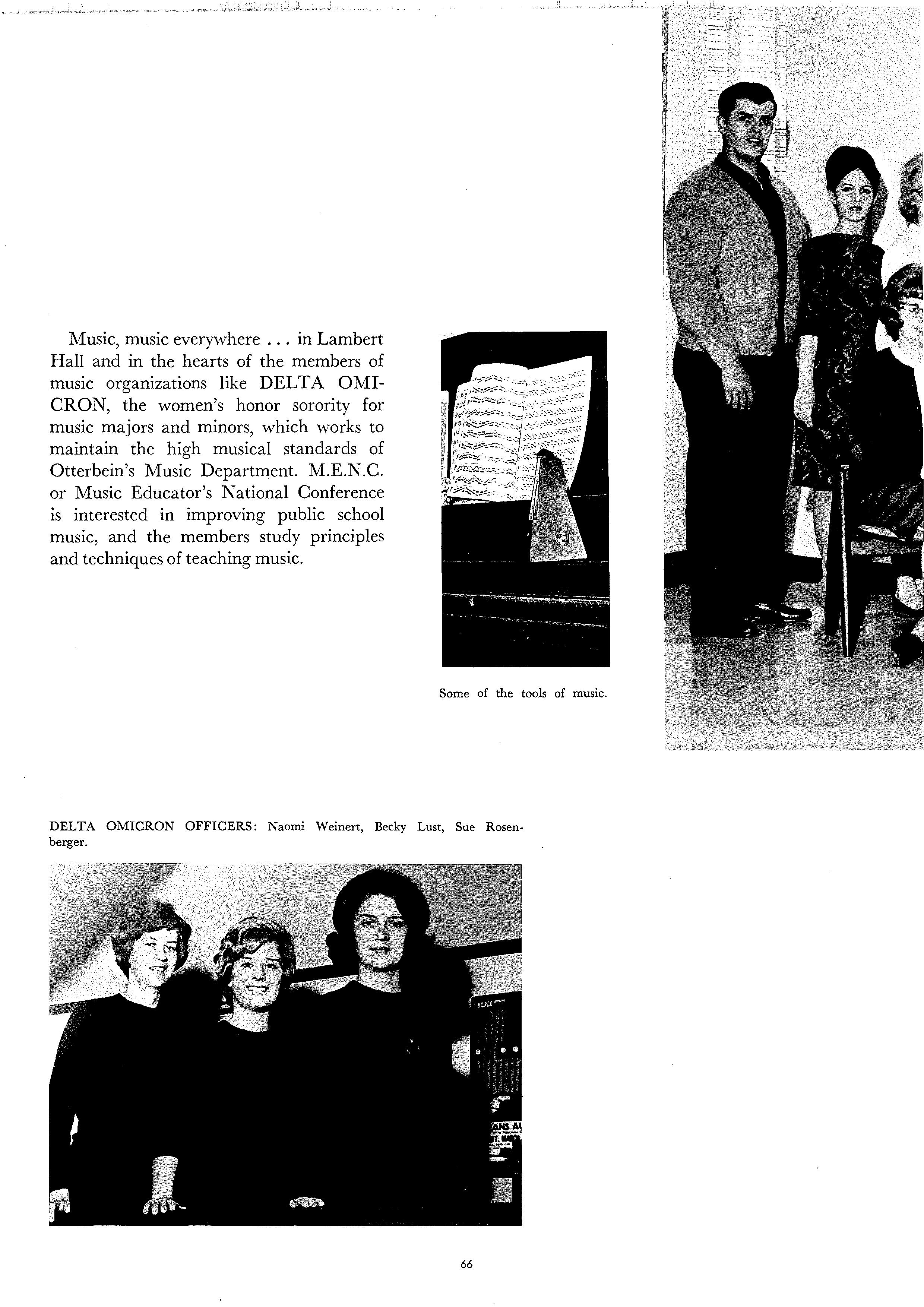 Among the many fruitful enterprises. which Otterbein students undertake is the publication of the SIBYL. Beyond the constant rush for deadlines, schedules, and layouts, beats the true essence of Otterbein tradition manifested by the SIBYL's staff of editors, photographers, copy writers, typists, business managers, advisors and many others. No other body of workers on campus strives to retain the memories of people, events, and customs which are so vital to the Otterbein story. The SIBYL this year, under the able leadership of Lana Rinehart and Frank Dustman, proves that the quality of the student is inherent within the context of a praiseworthy yearbook.