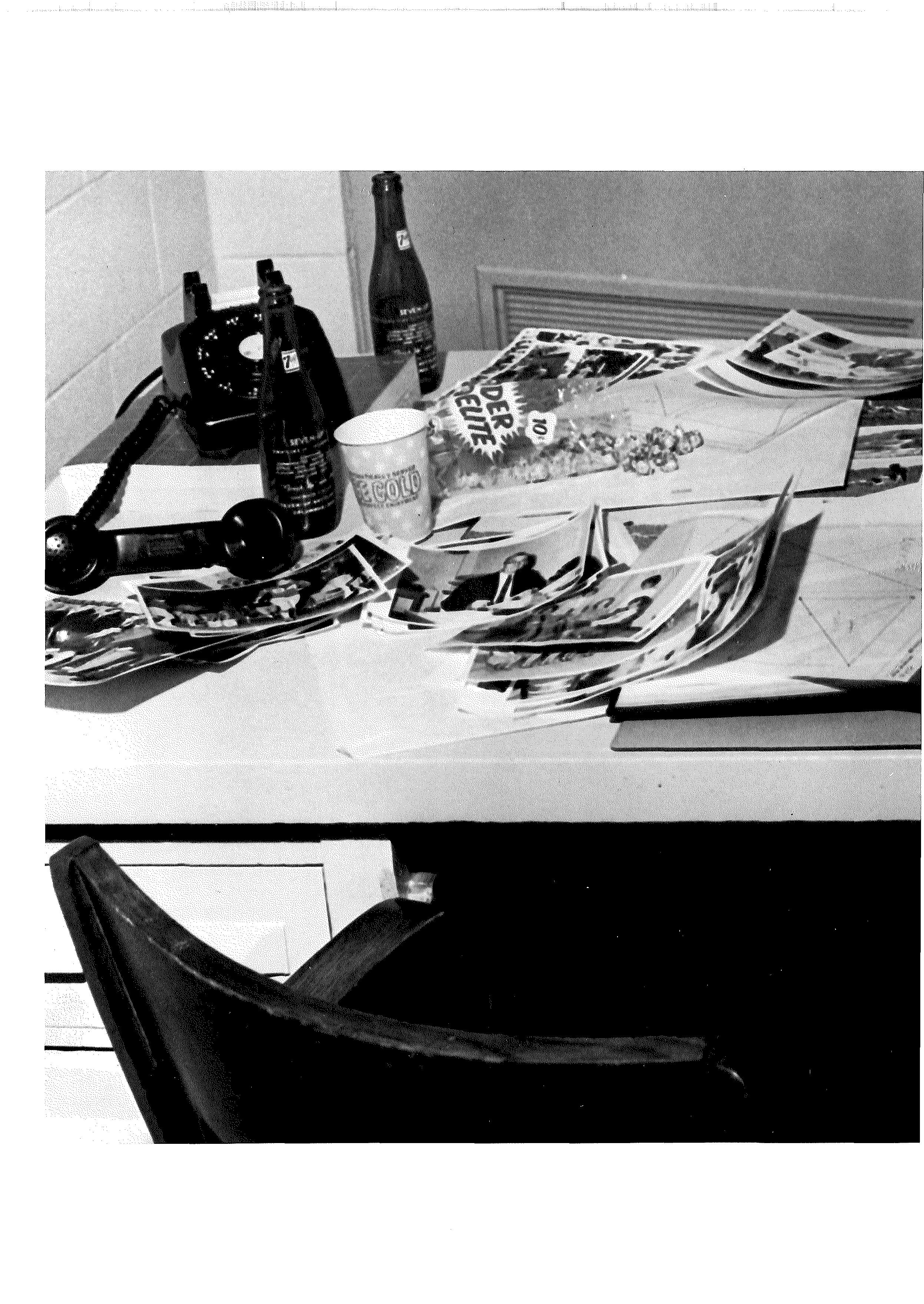 The lay-out staff searches for ideas in the many reference books in the SIBYL office.