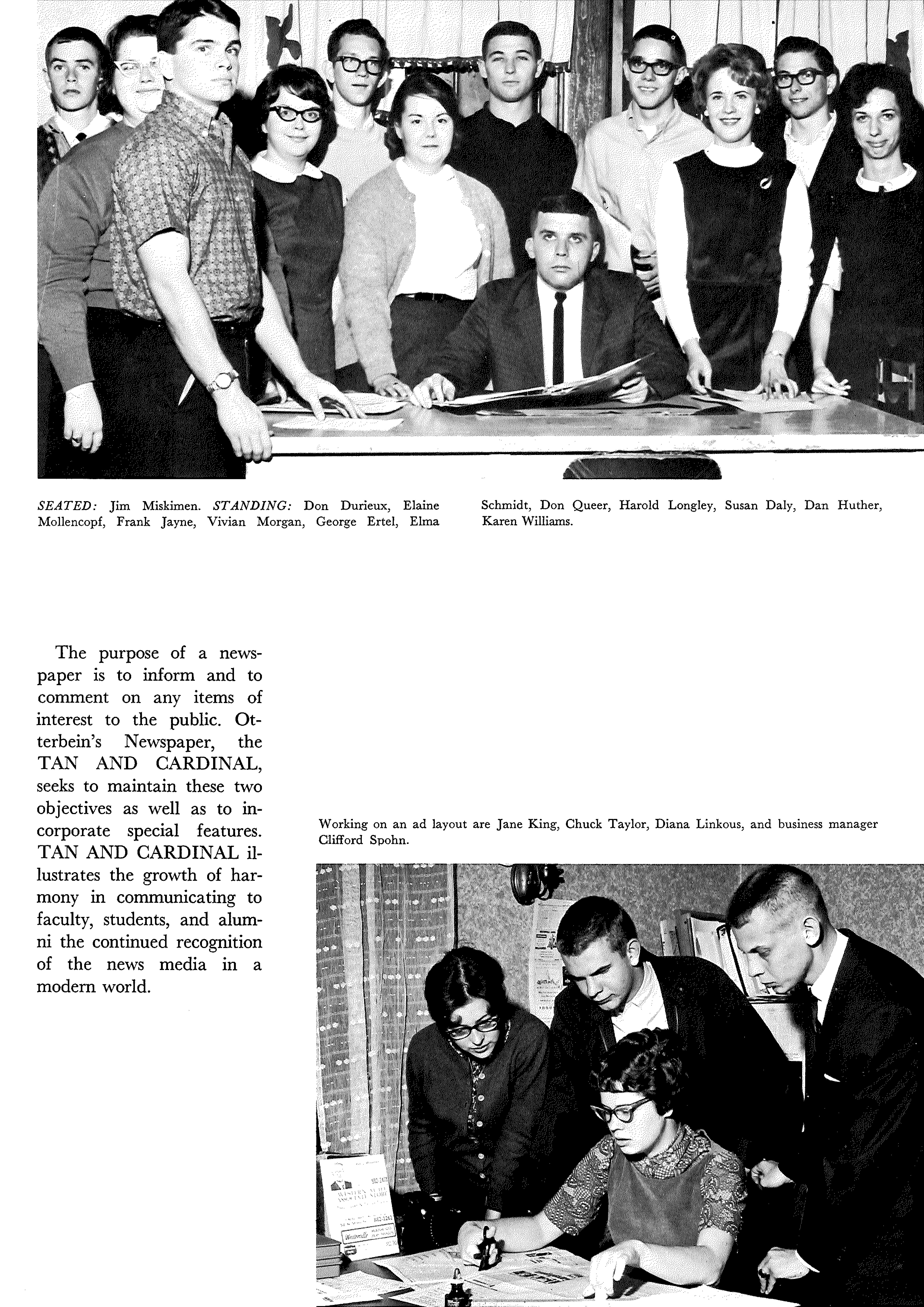 The purpose of a newspaper is to inform and to comment on any items of interest to the public. Otterbein's Newspaper, the TAN AND CARDINAL, seeks to maintain these two objectives as well as to incorporate special features.